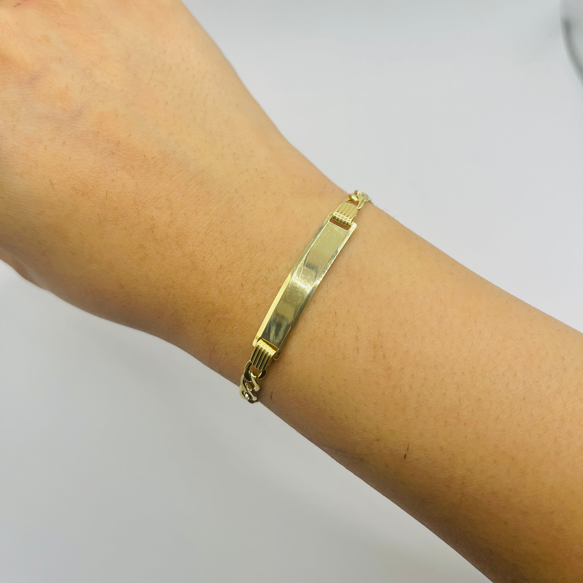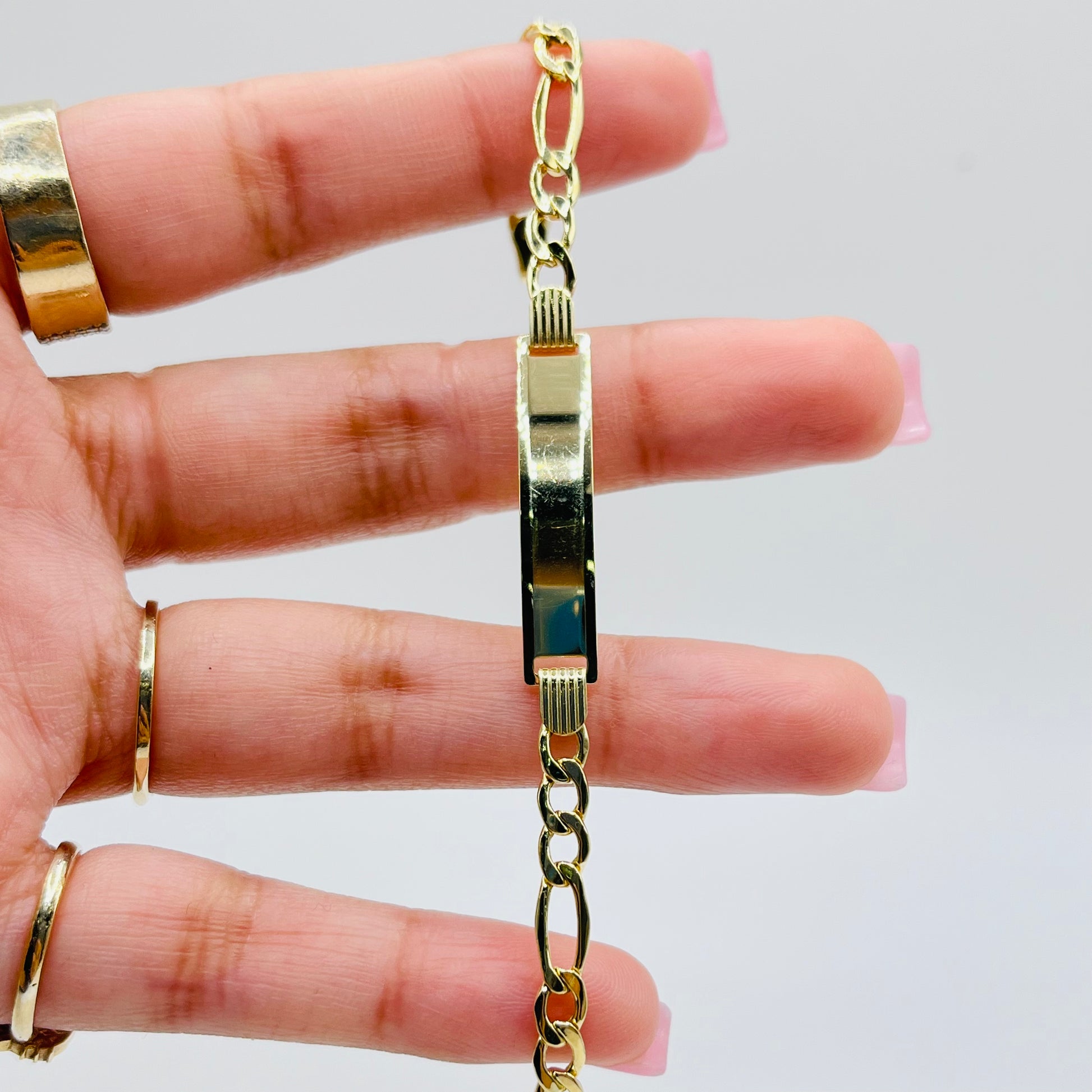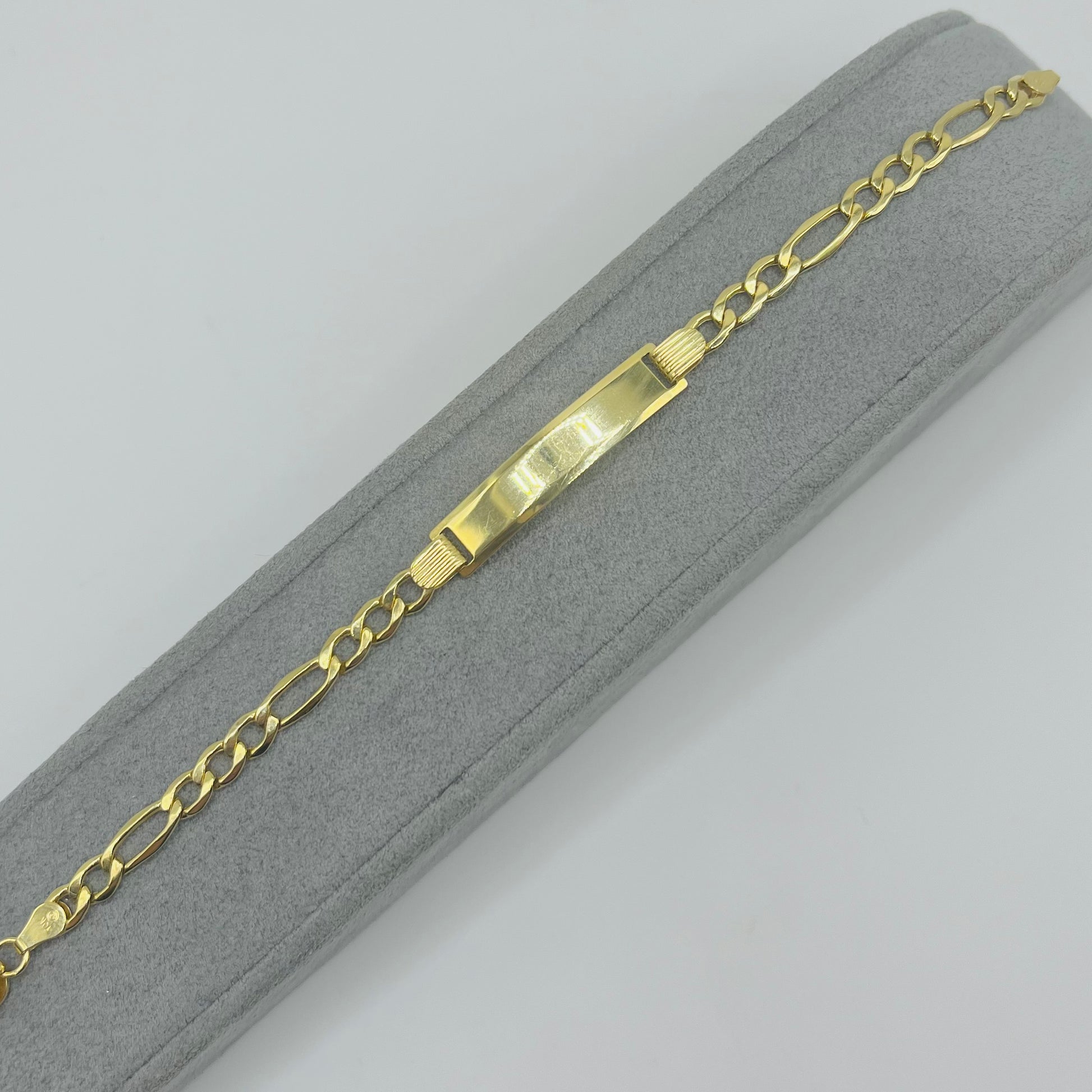 This 10K Gold 4mm Figaro ID Bracelet features the iconic alternating link pattern for a touch of elegance, paired with a bold ID plate for personalization. A sophisticated statement piece that seamlessly blends style and meaning.