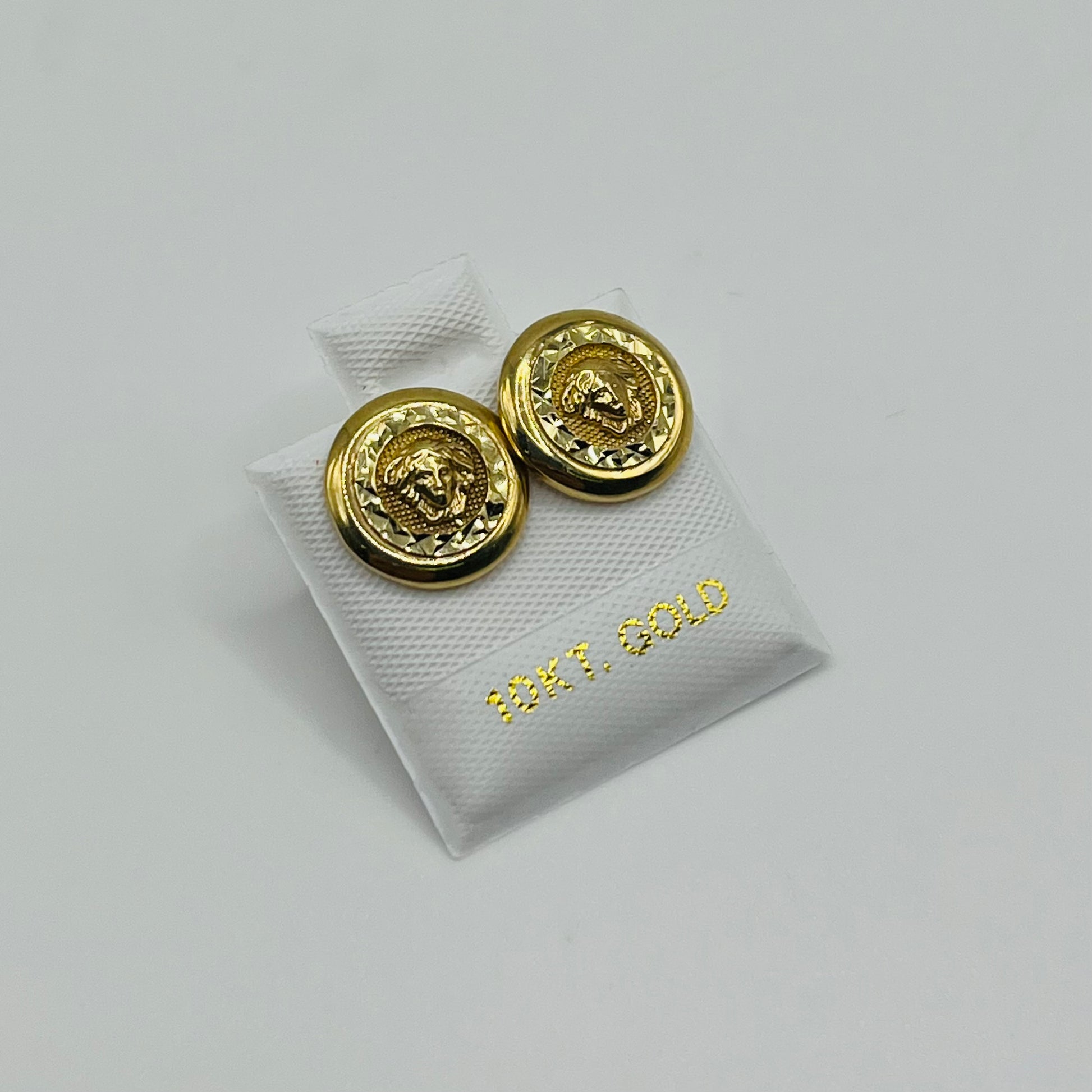 Step into bold sophistication with these 10K Diamond Cut Medusa Earrings — where ancient symbolism meets modern craftsmanship. Made from genuine 10K gold, each earring features an intricately detailed Medusa head surrounded by precision diamond-cut edges that add brilliance and texture.