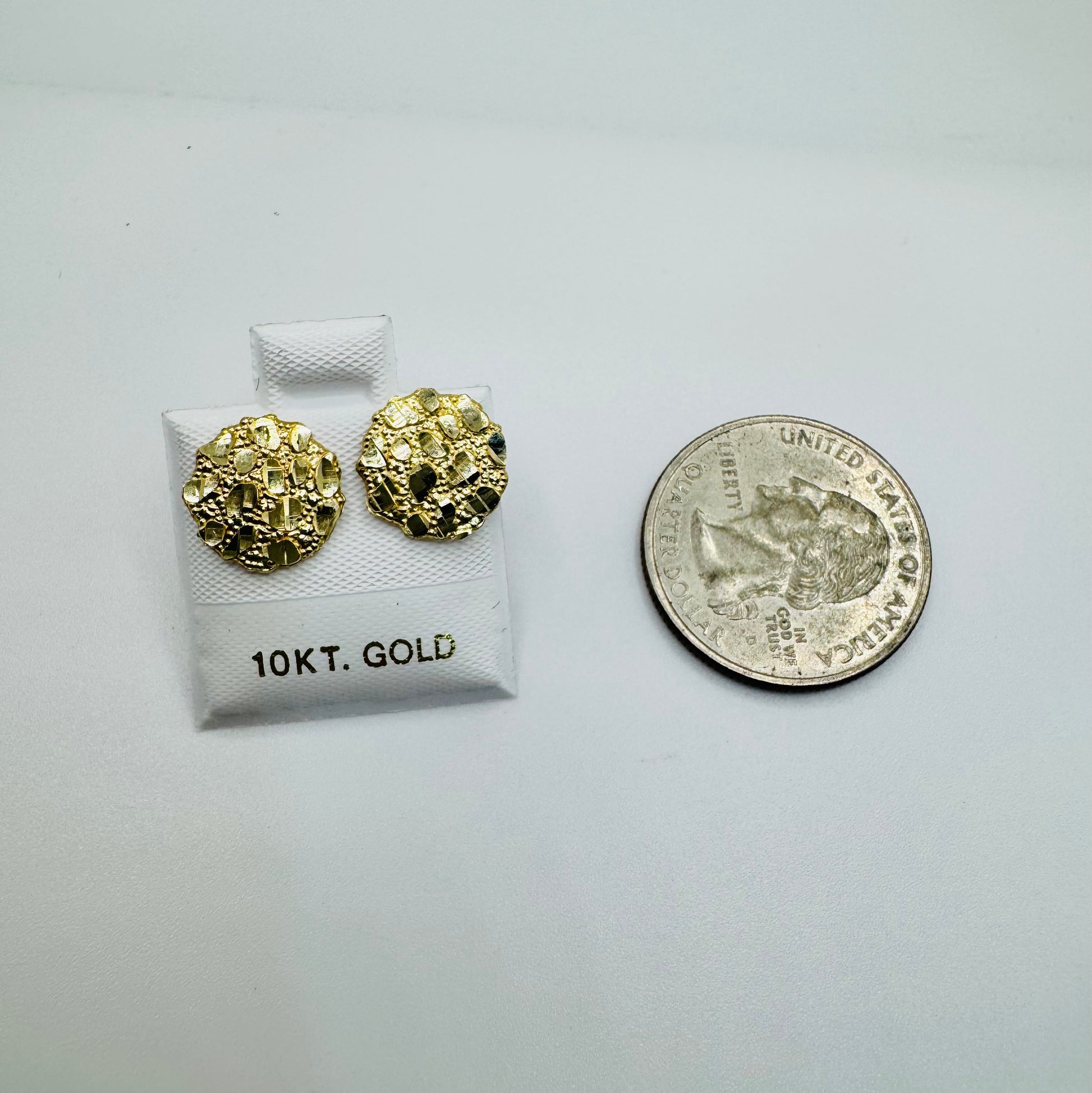 The 10K Gold Medium Round Nugget Earrings are a stunning pair of earrings that will add a touch of elegance to any outfit. Crafted from high-quality 10 karat gold, these earrings feature a unique nugget design that adds texture and dimension to the piece. Measuring 11-12mm in diameter, they are the perfect size for both everyday wear and special occasions.