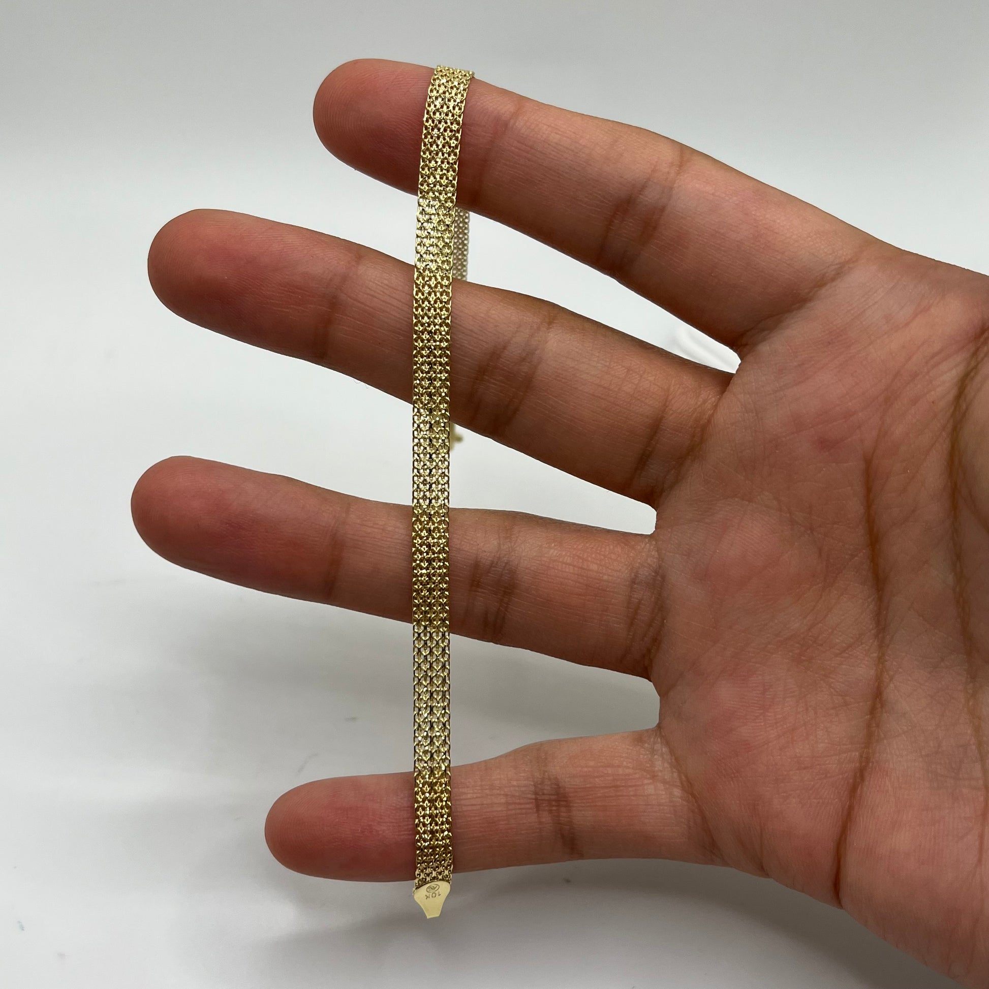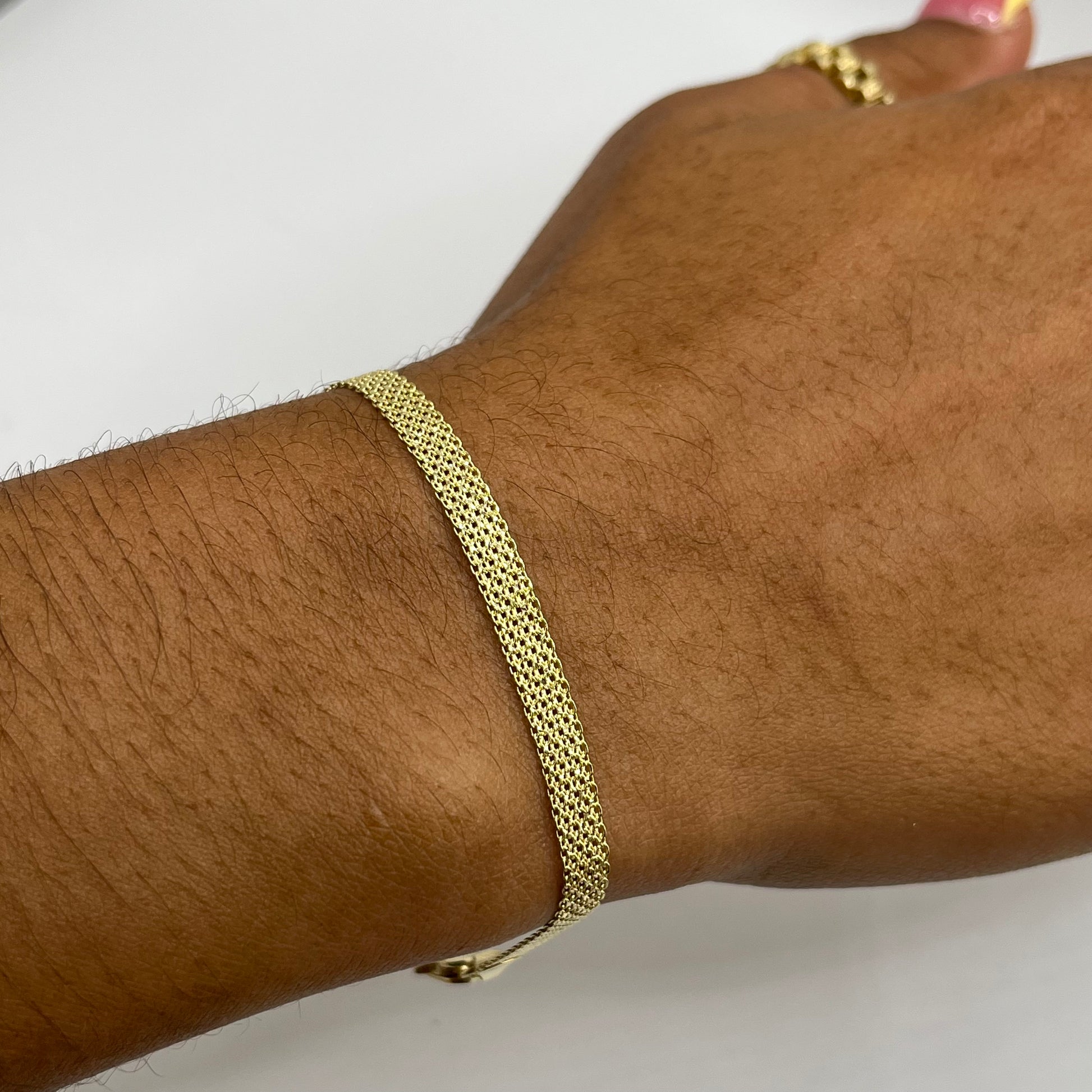 Elevate your style with our exquisite 10k Gold 4mm Bismarck Bracelet. This timeless piece features the intricate Bismarck chain pattern, renowned for its durability and luxurious appearance. The perfect 4mm width offers a substantial presence without overwhelming your wrist. Crafted from genuine 10k gold, this bracelet delivers the perfect balance of investment value and everyday wearability. Make a statement that transcends trends.