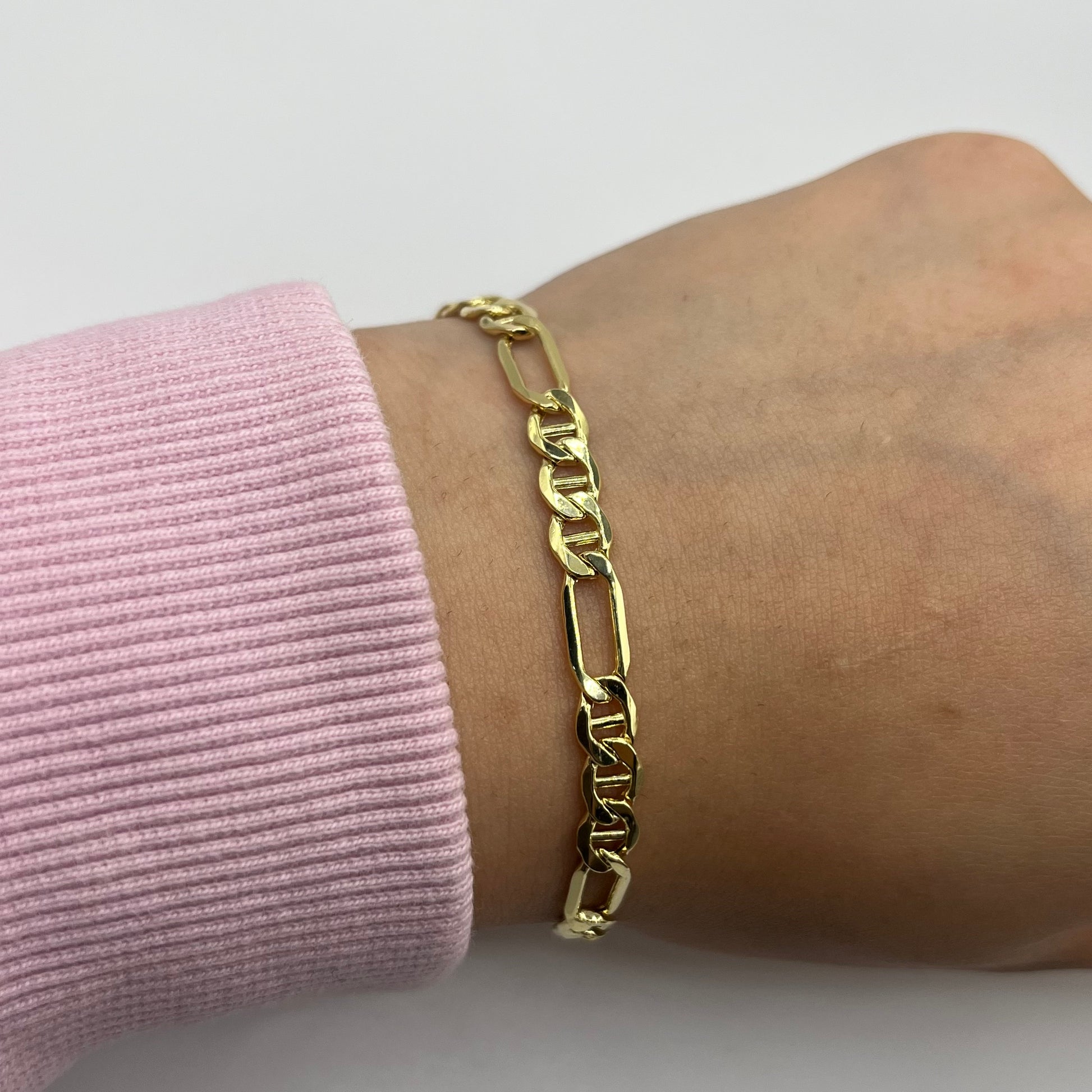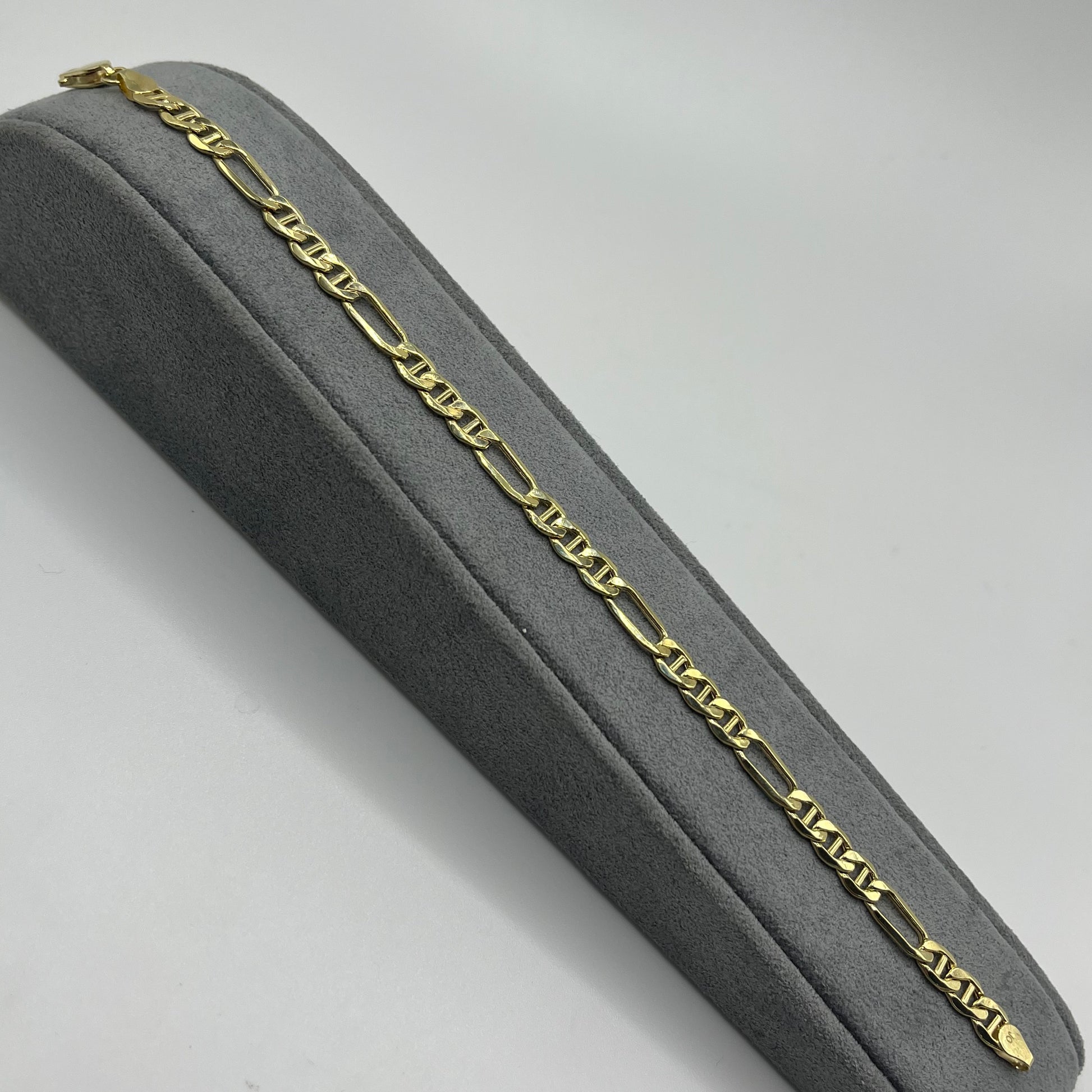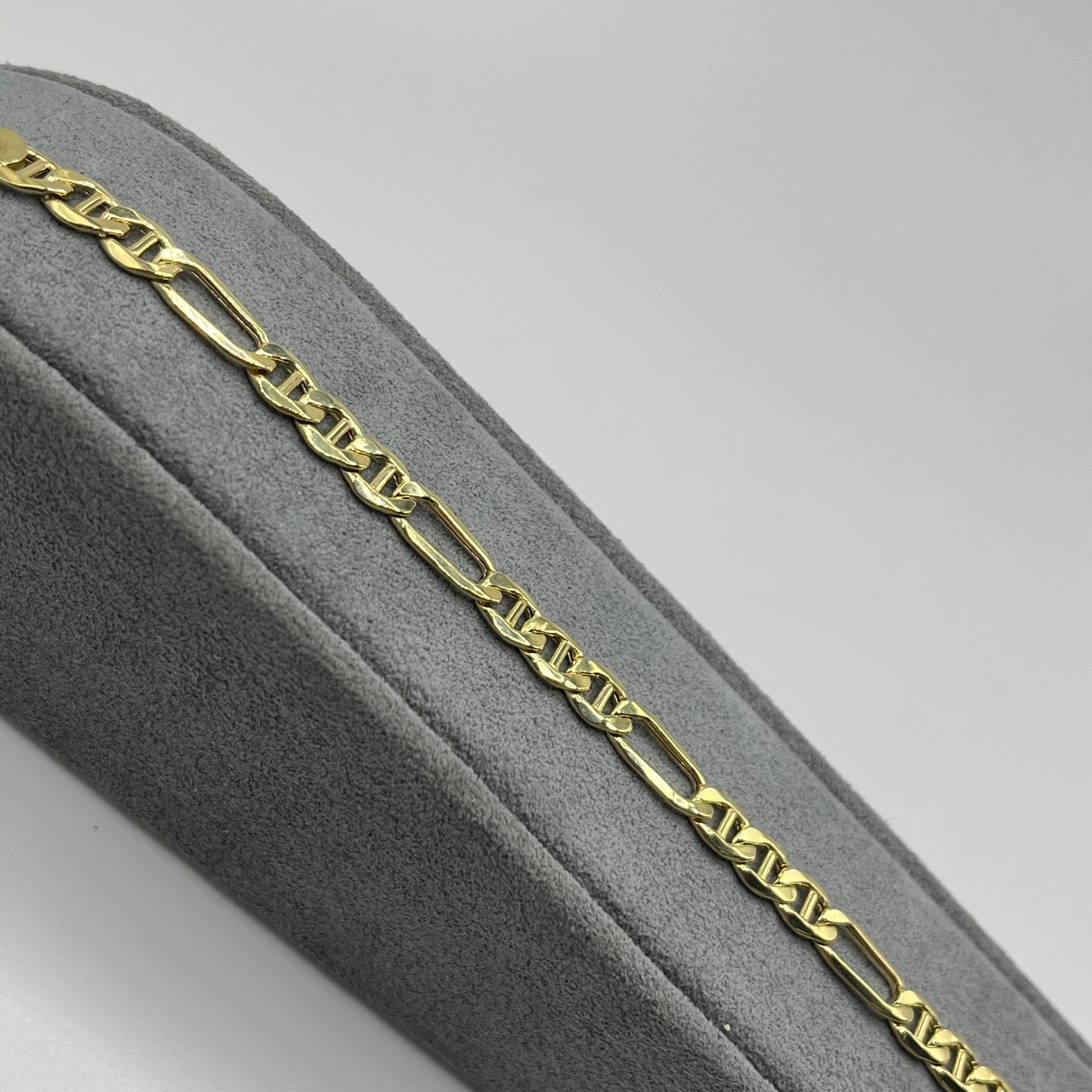 Elevate your style with our exquisite 10k Gold 5mm Hollow Figucci Bracelet. This stunning piece combines the iconic Figarro and Gucci-inspired designs into one luxurious accessory. The hollow construction ensures a lightweight feel while maintaining an impressive presence on your wrist. Perfect for making a statement without saying a word – indulge in timeless elegance today.
