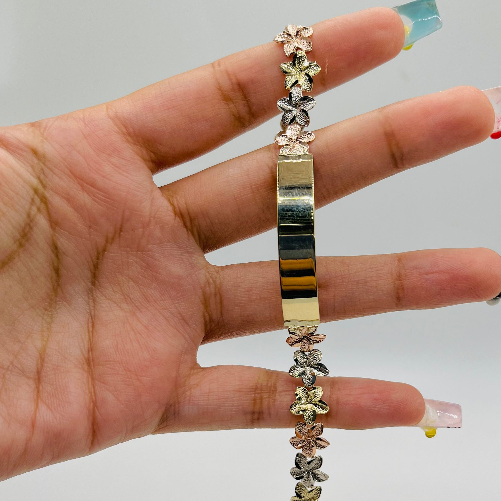 10k Gold 6mm Tr-Color Hibiscus ID Bracelet