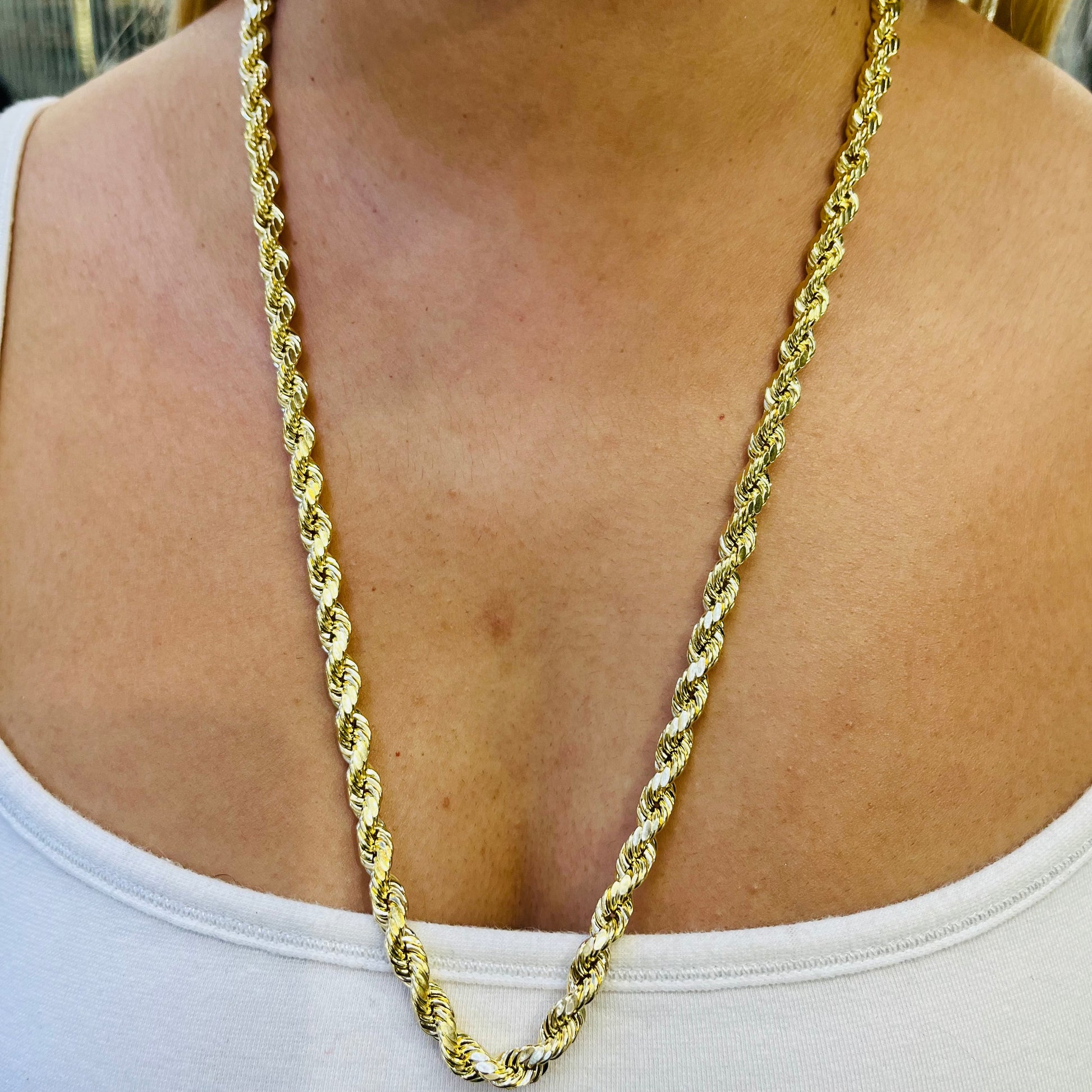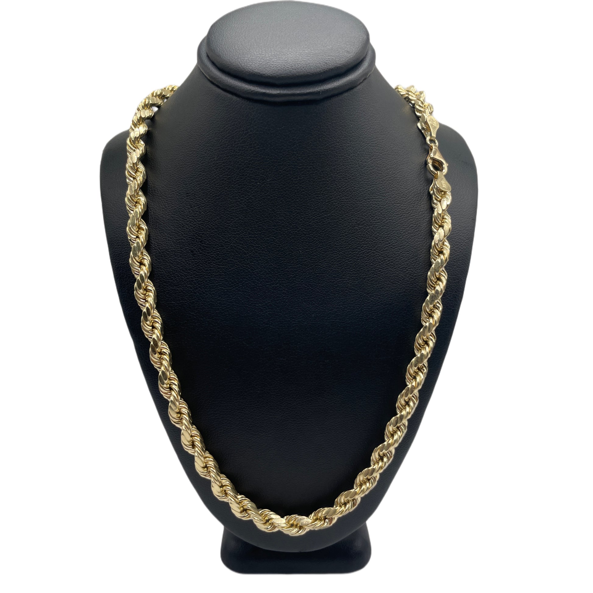 This 10K Gold 7mm Hollow Rope Chain is an absolute must-have. Its sleek and stylish gold design is sure to turn heads and make a statement. Its 7mm size is perfect for both layering and wearing alone.