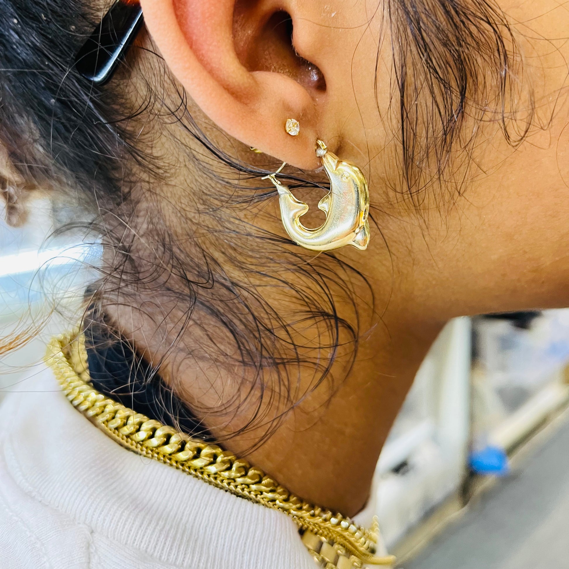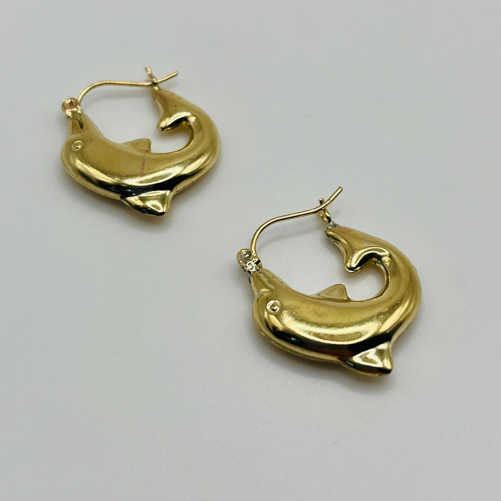 Elevate your style with these 10k Gold At Sea Dolphin Hoops, featuring full dolphin designs that capture the beauty and grace of the ocean. Crafted from durable 10k gold, these hoops offer a unique blend of elegance and playful charm, perfect for adding a touch of marine-inspired sophistication to any outfit. Their lightweight design ensures comfortable wear all day long, making them an irresistible accessory for those who love distinctive, meaningful jewelry.