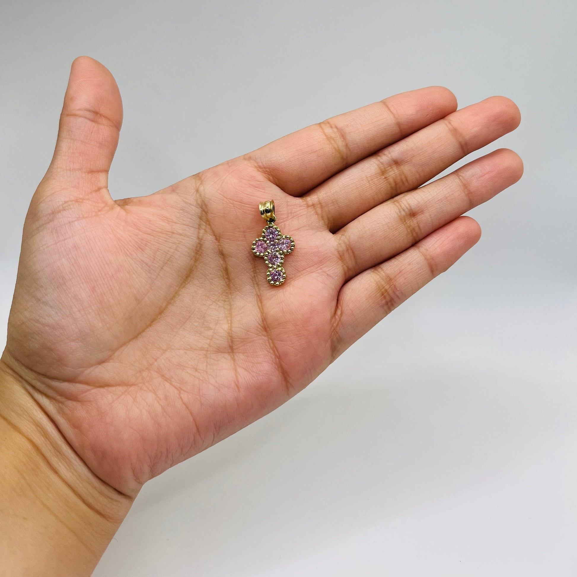 10k Gold Beaded Cz Pink Cross Charm (M)