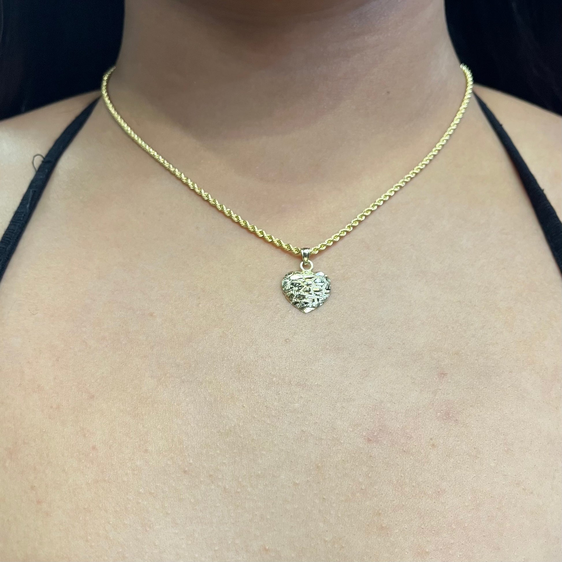 10K Gold Bubble Heart Nugget Charm (S, M)