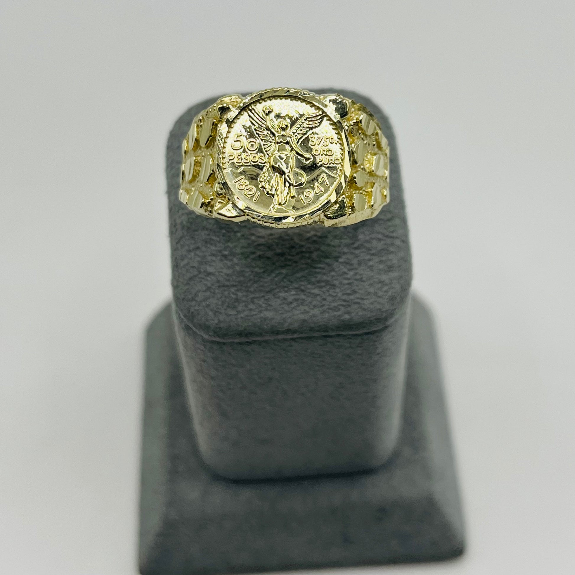 Celebrate timeless elegance with this stunning 10k Gold Centenario Nugget Ring. Crafted from high-quality 10 karat gold, this ring features a beautifully textured nugget design inspired by the iconic Centenario coin, symbolizing wealth and prosperity. Its bold yet refined style makes it perfect for both everyday wear and special occasions. A true statement piece that combines classic craftsmanship with modern flair.