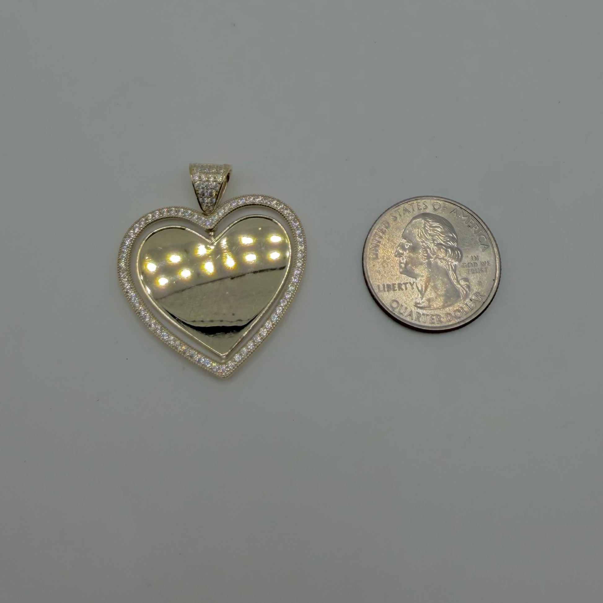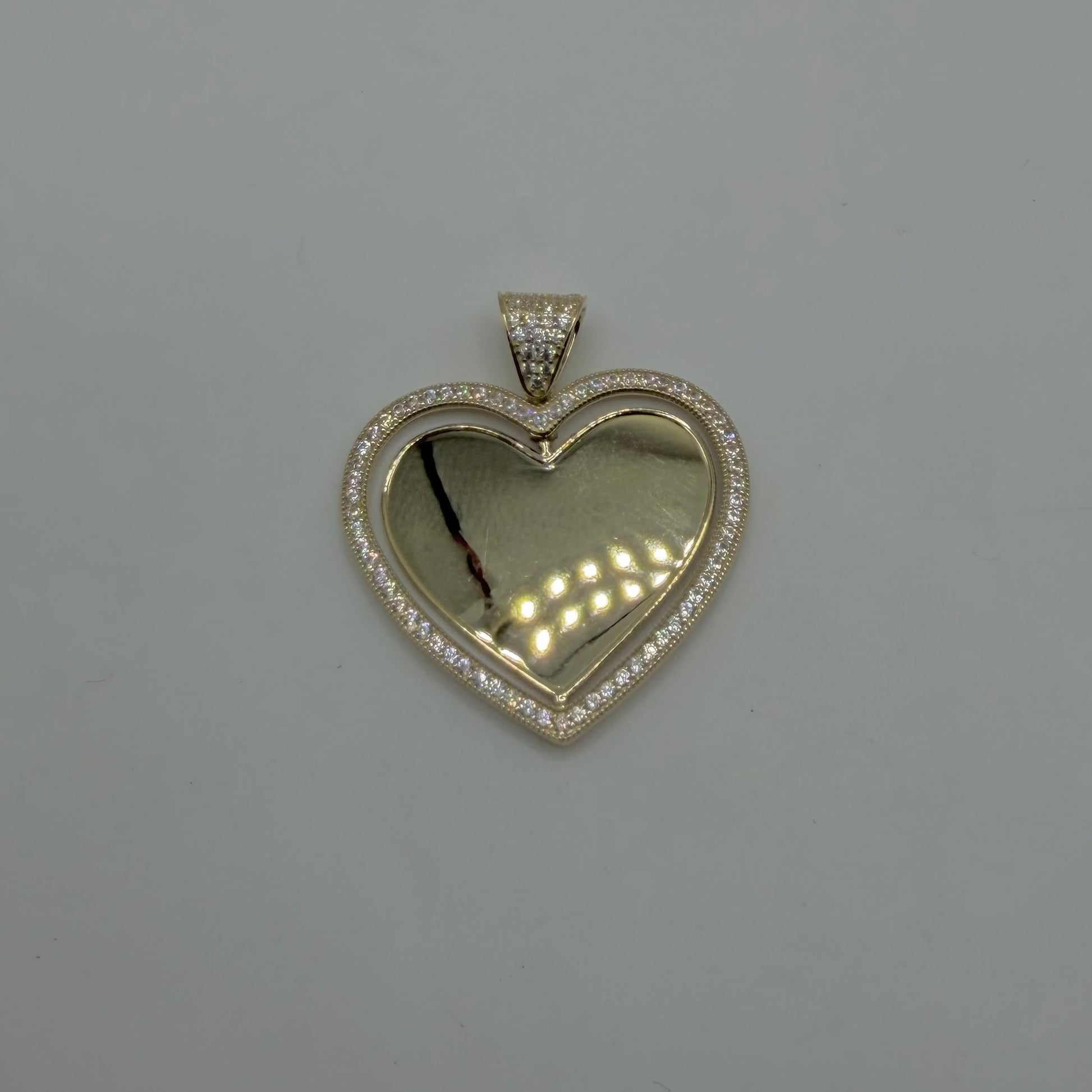 10k Gold Cz Bell Heart Double Sided Picture Pendant