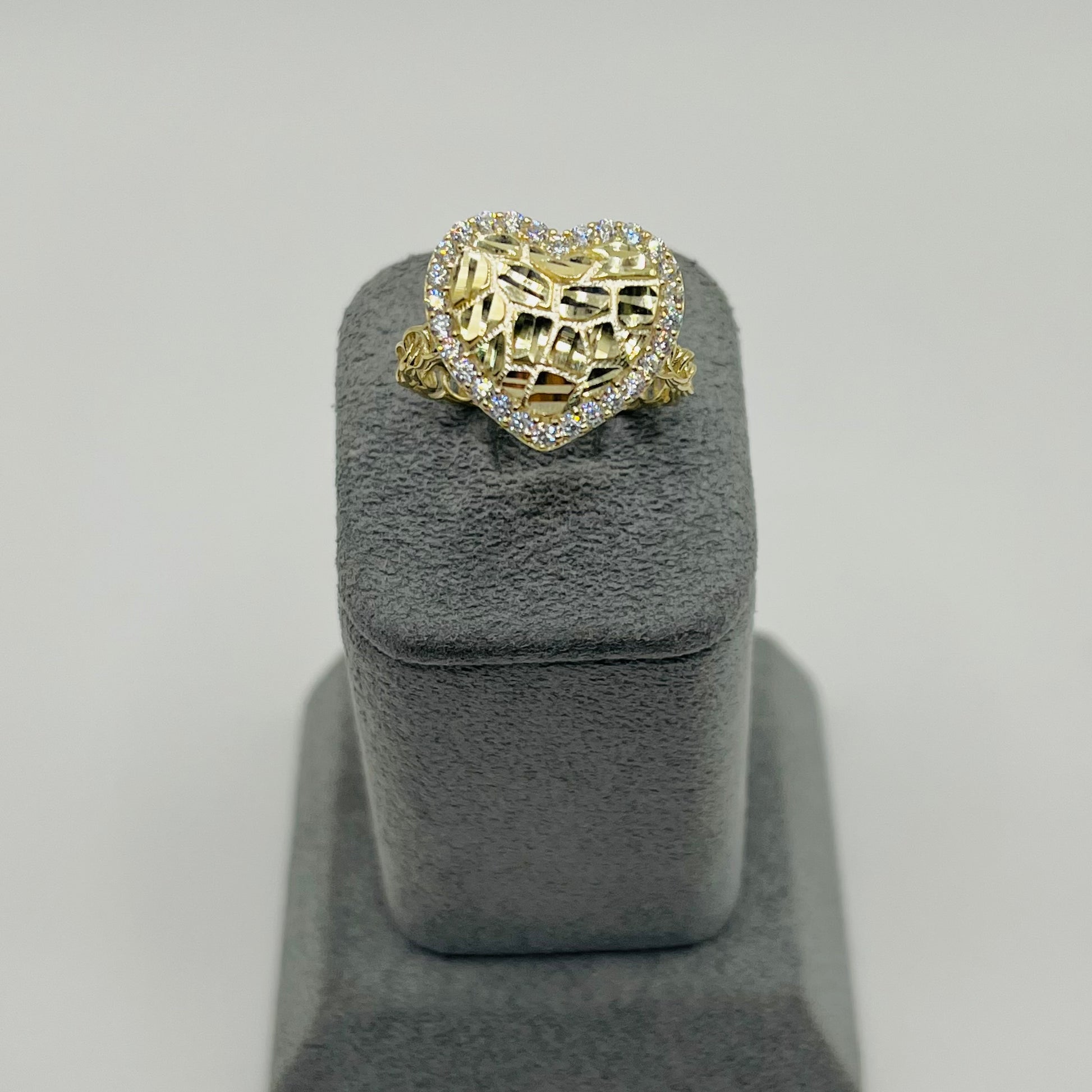 10k Gold Cz Nugget Heart Cable Ring (M)