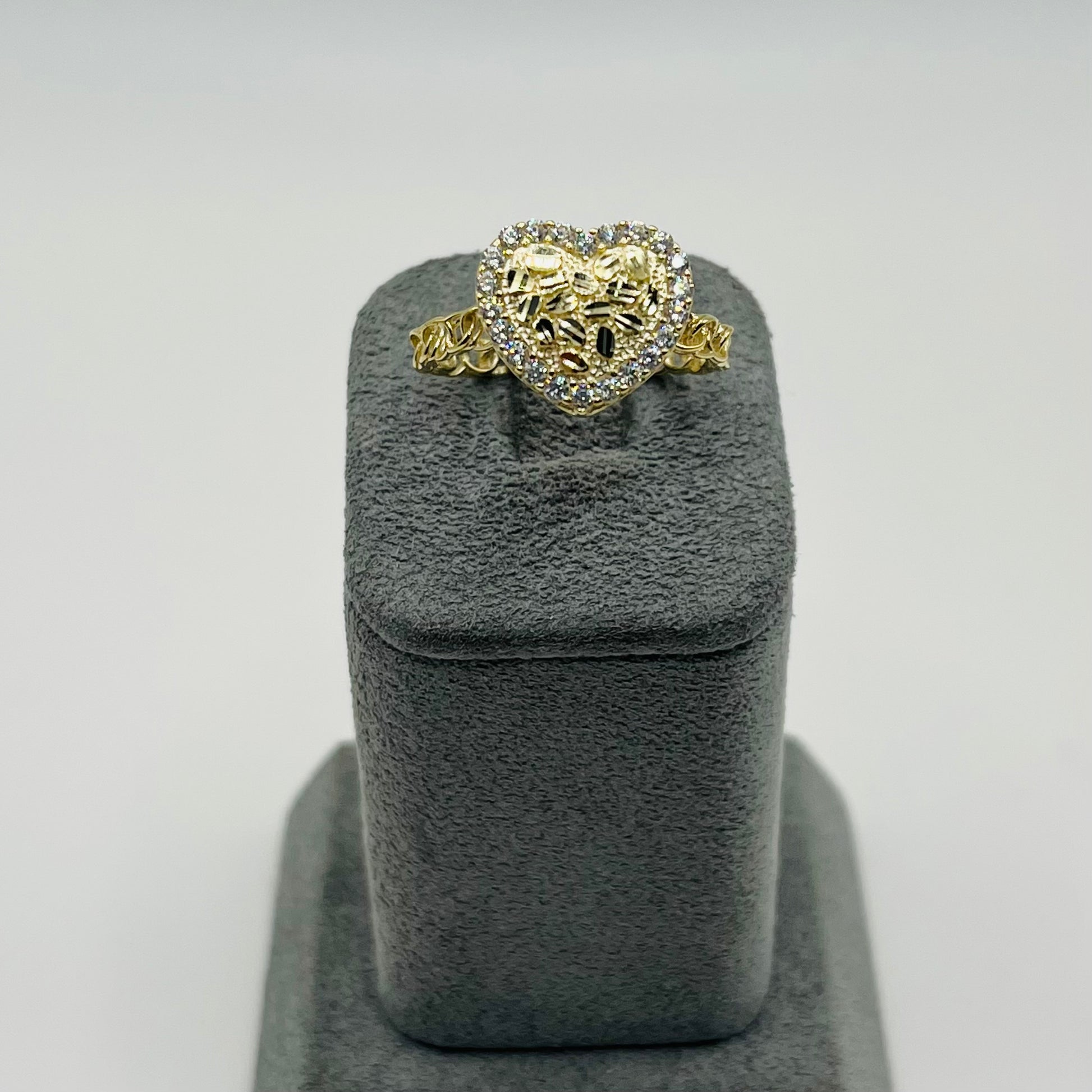 10k Gold Cz Nugget Heart Cable Ring (S)