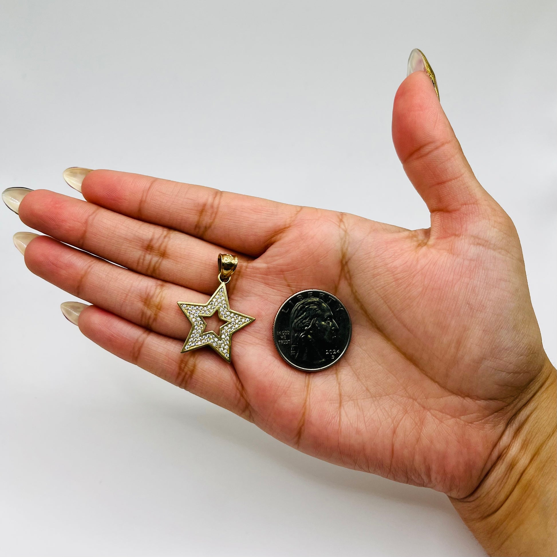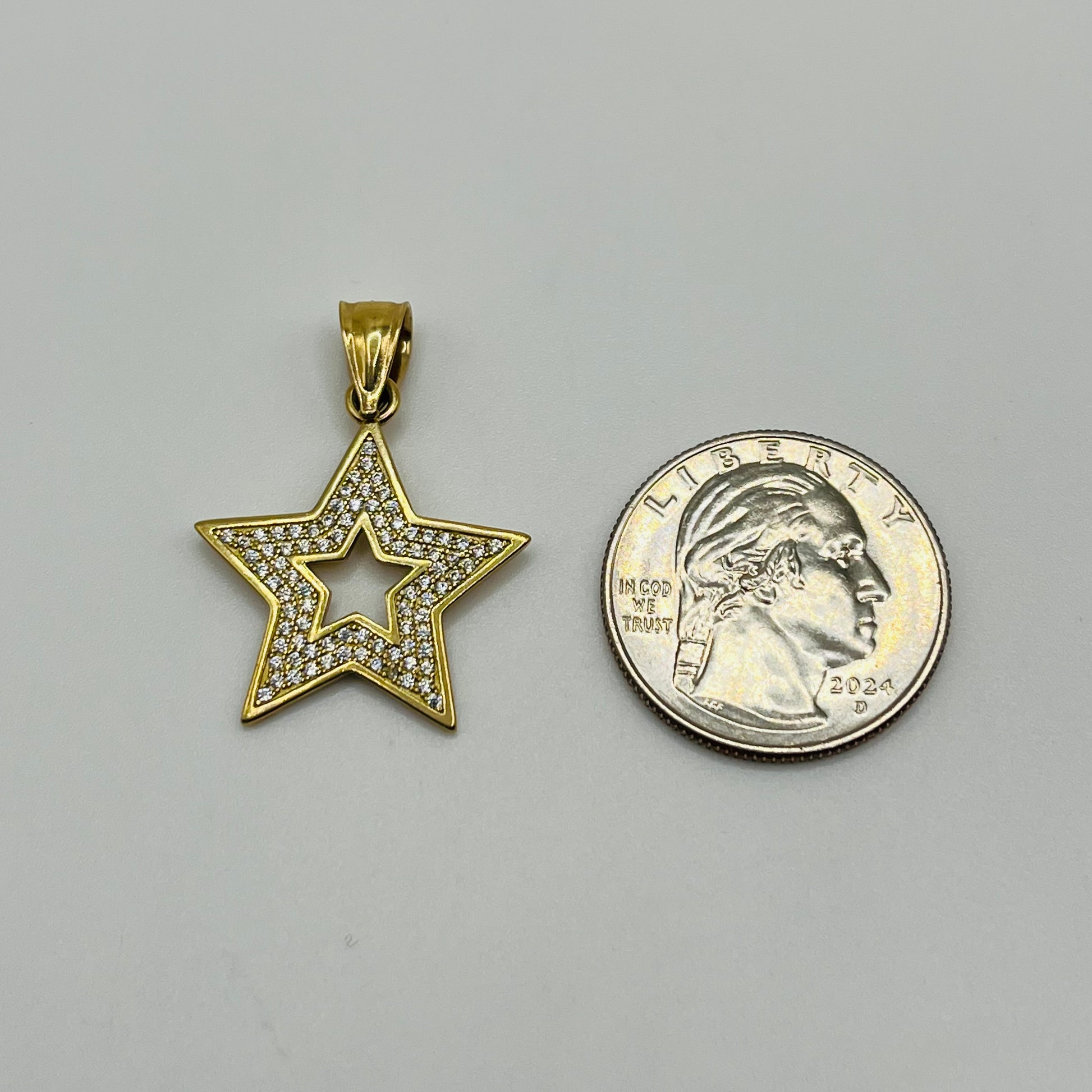 10k Gold CZ Open Star Charm