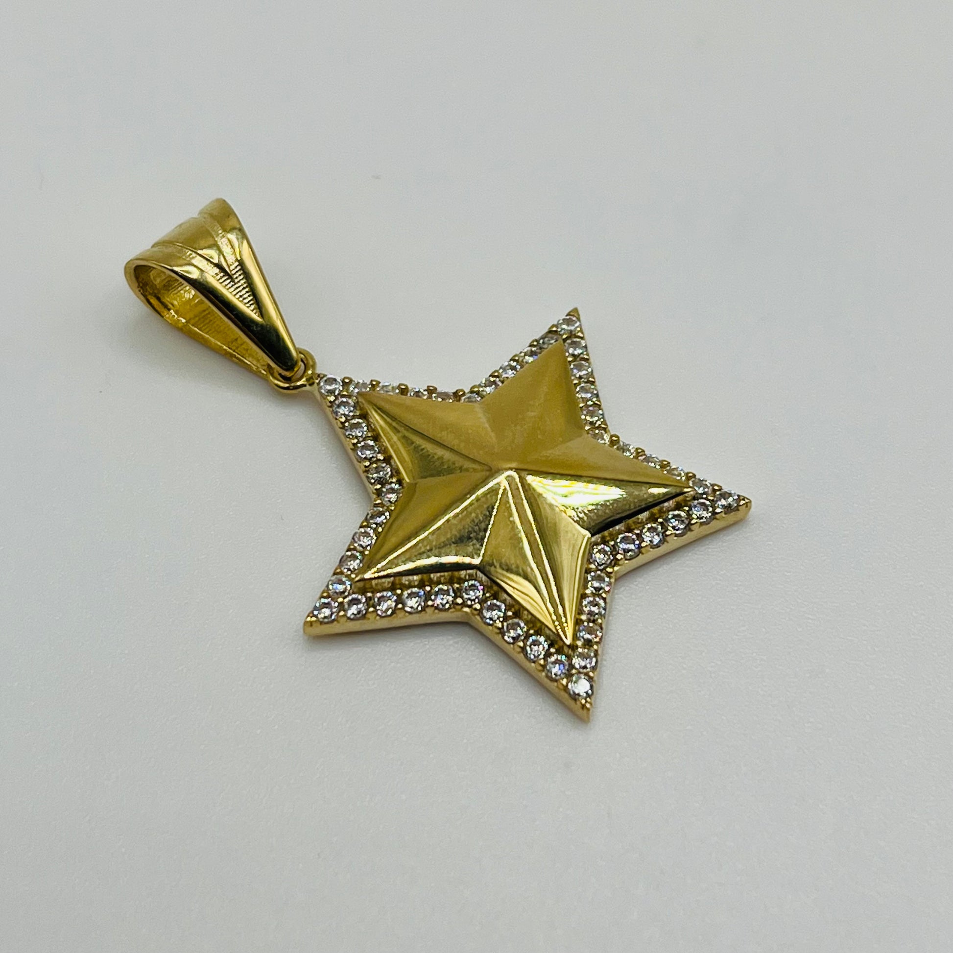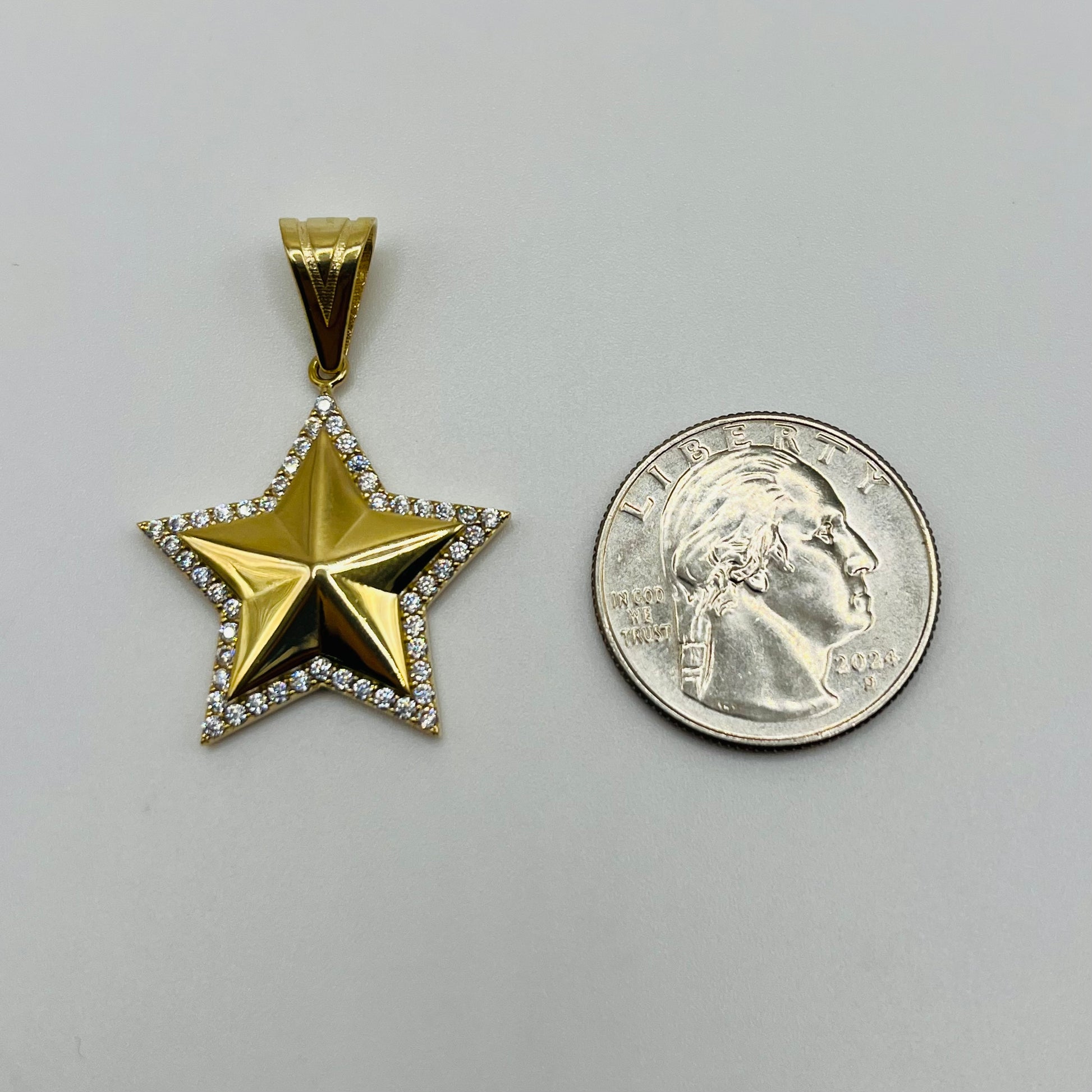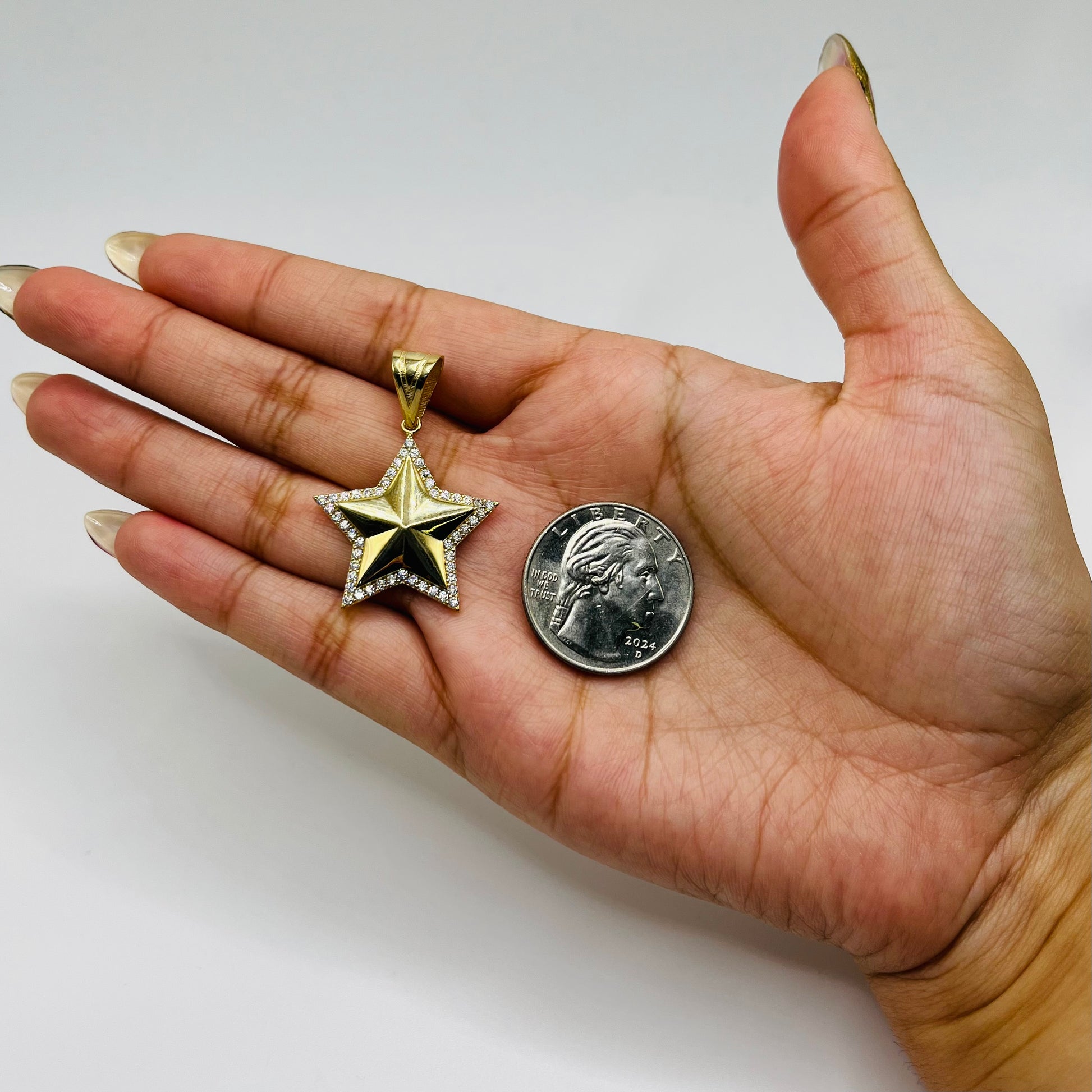 Add a touch of celestial elegance with this 10k Gold CZ Outlined Star Charm. Crafted in warm 10k gold, its delicate star shape is beautifully defined by sparkling cubic zirconia accents, making it a perfect statement piece or a meaningful gift. Lightweight and versatile, this charm effortlessly enhances any necklace or bracelet, bringing a subtle shine that captures attention and complements your style with timeless charm.