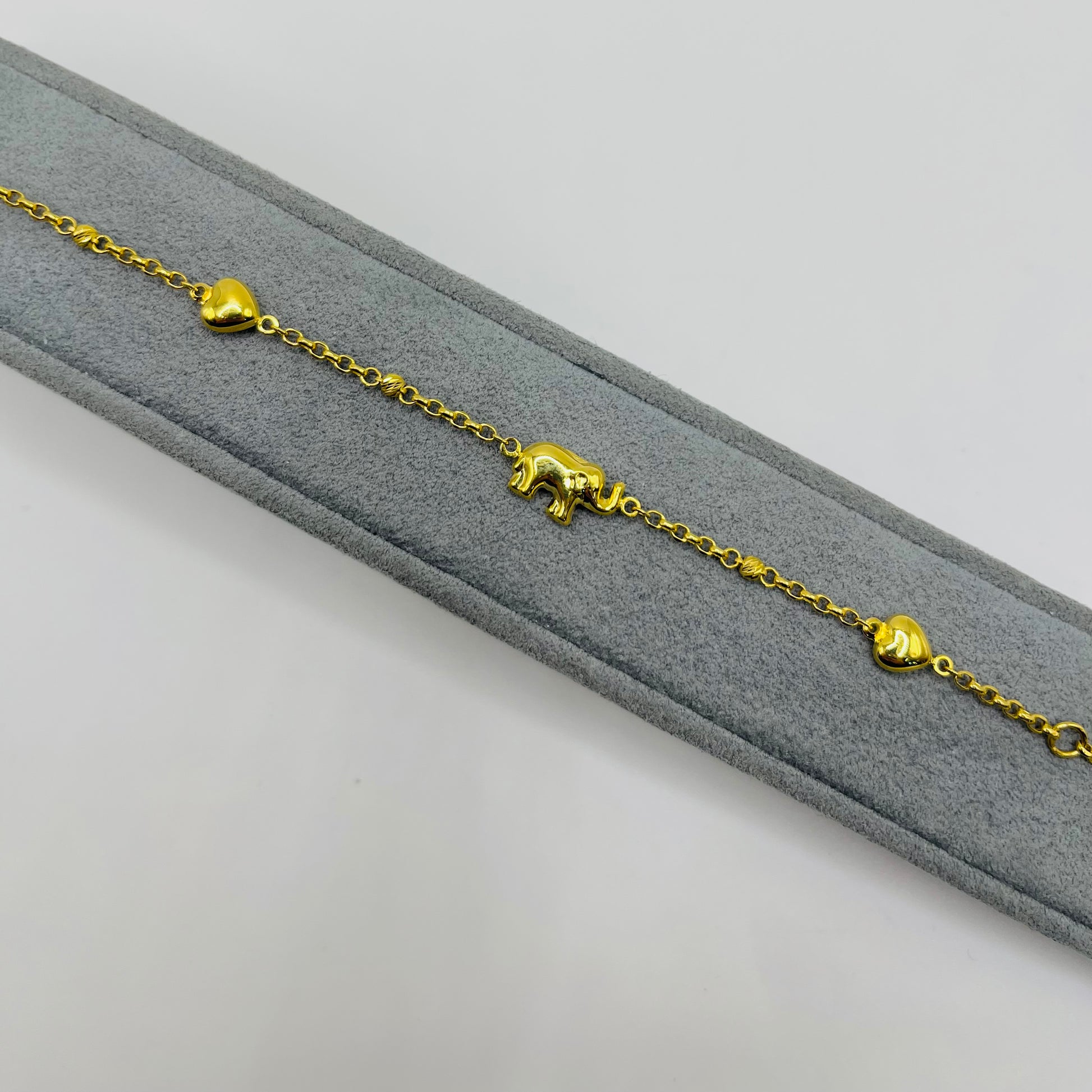 Celebrate your unique style with this 10k Gold Designer Bracelet, featuring a charming puffed-up elephant and delicate heart links. Crafted with fine detail, this bracelet blends playful elegance and meaningful symbolism, making it the perfect accessory for elephant lovers and those who cherish heartfelt connections. Its lightweight design ensures comfortable wear, while the high-quality gold promises lasting shine and durability. Add a touch of whimsy and warmth to any outfit with this standout piece.