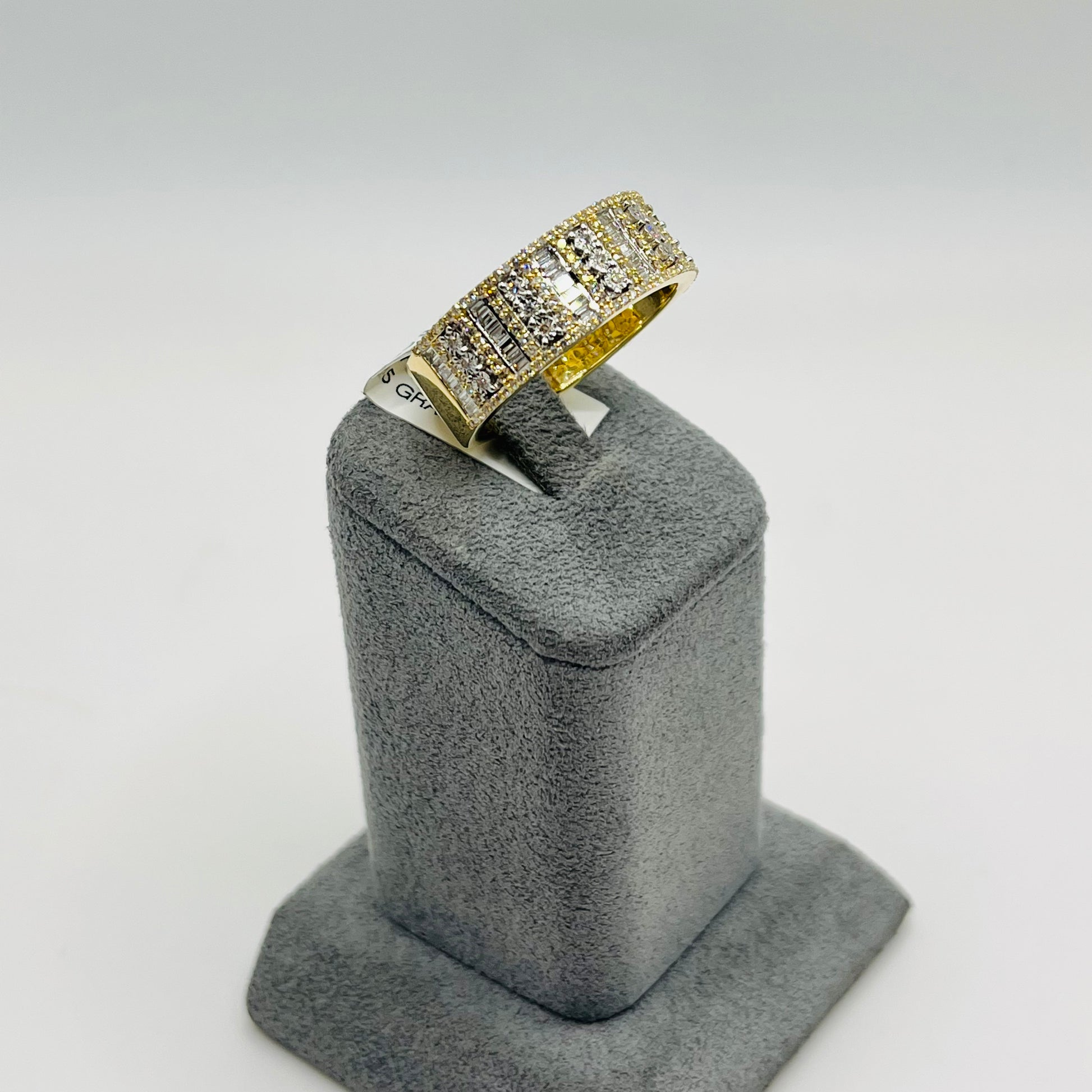 Elevate your everyday elegance with this stunning 10k gold baguette band ring. Featuring a bold, thick design adorned with shimmering diamond baguettes, this piece makes a powerful statement whether worn as a promise ring or a meaningful commitment symbol. The substantial beam construction catches light beautifully, creating brilliant sparkle from every angle. Perfect for those who appreciate timeless sophistication with modern edge, this ring combines durability with undeniable glamour. A versatile treasure that transitions seamlessly from casual to formal occasions.