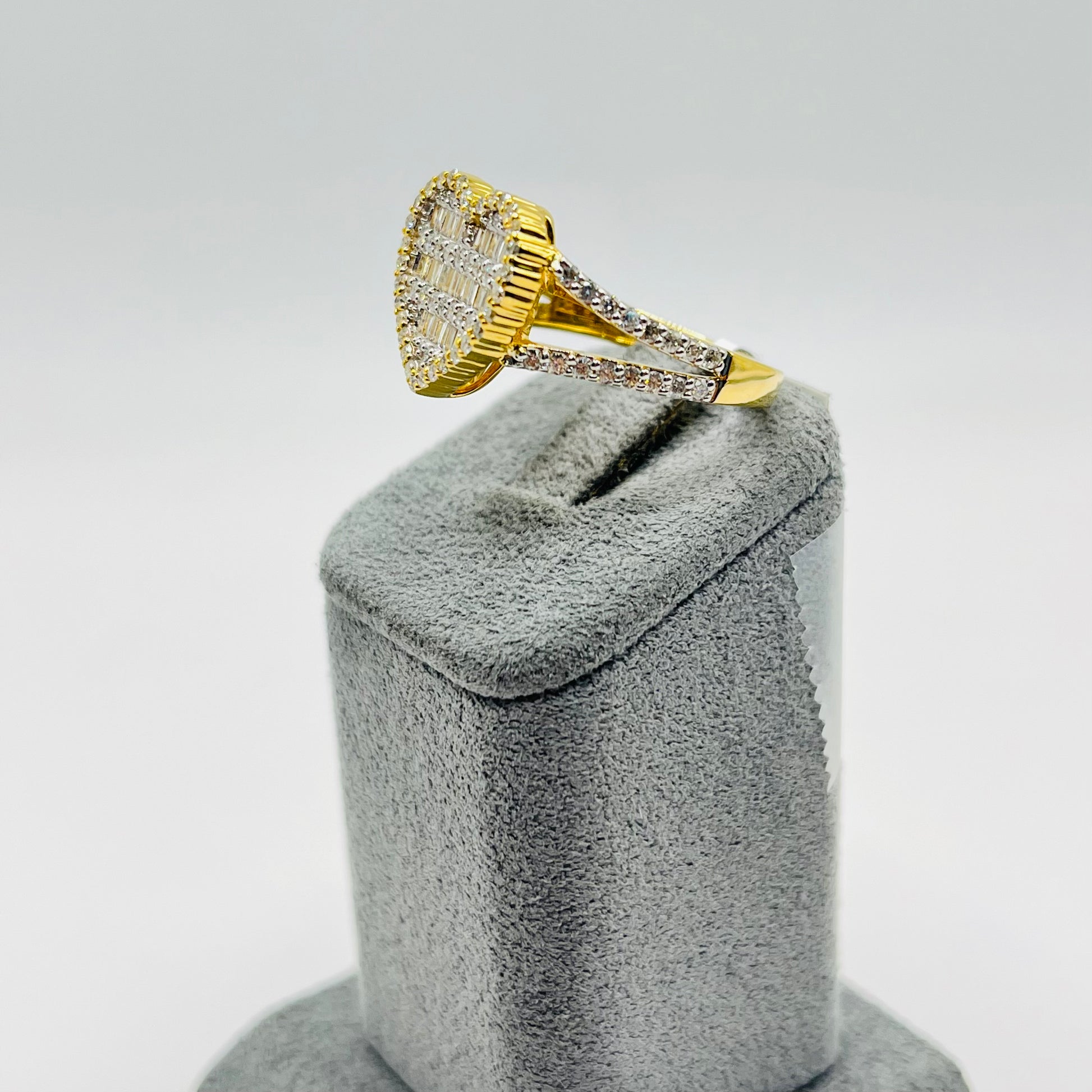 Elevate your everyday elegance with this stunning 10k gold heartline ring, where romance meets refined craftsmanship. The center baguette diamond catches light beautifully, while accent diamonds along the band add sophisticated sparkle from every angle. Perfect for those who appreciate timeless design with a modern twist, this piece seamlessly transitions from day to night. A meaningful choice for engagements, anniversaries, or as a treasured gift to yourself.