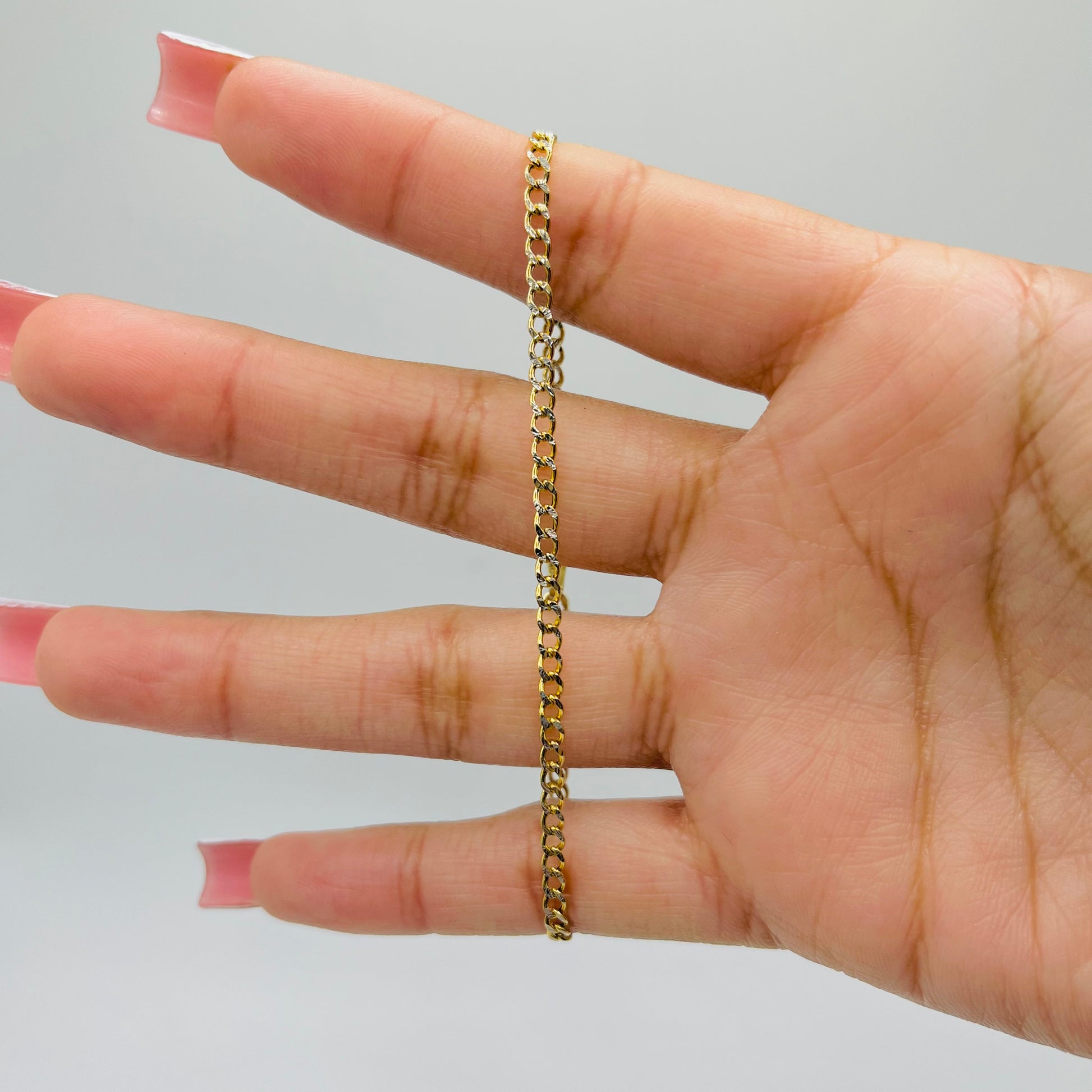 10K Gold Diamond Cut Hollow Cuban Bracelet 2.5MM