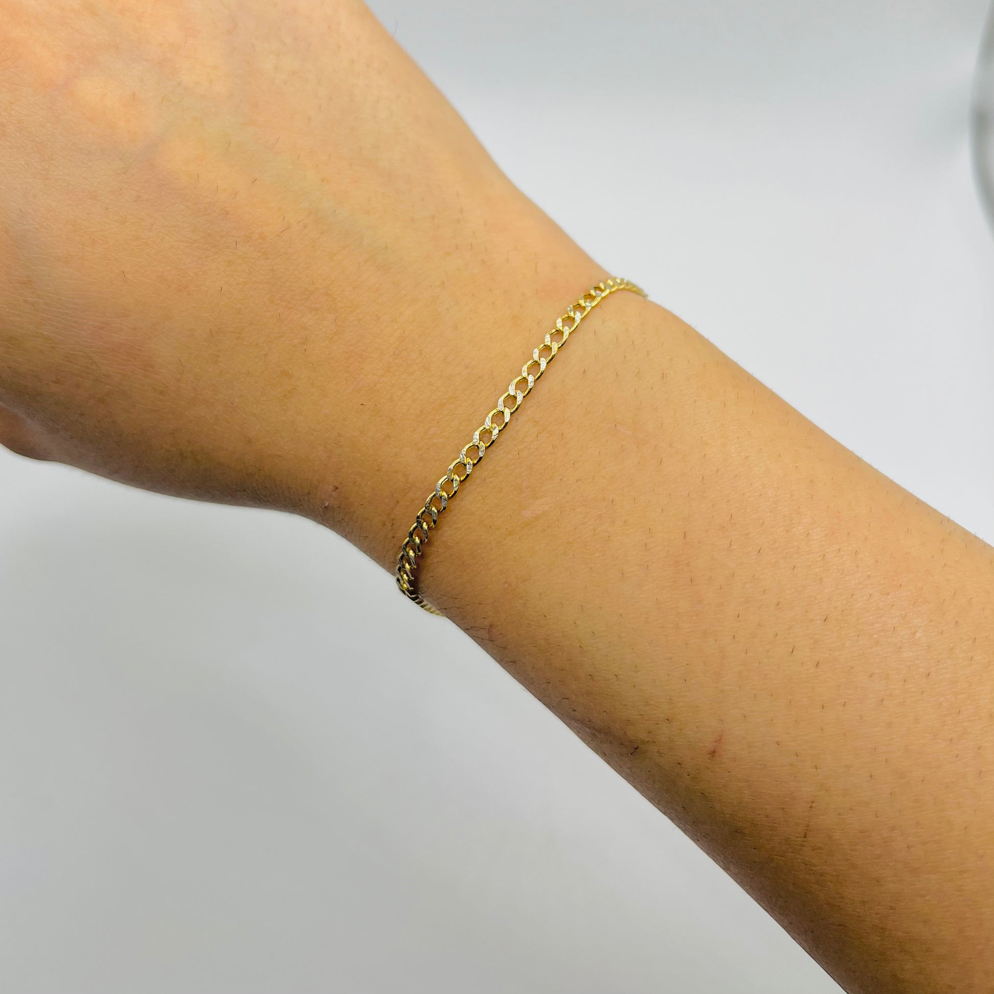 This dainty 10K Gold 2.5mm Diamond Cut Bracelet is all about elevating your style to the next level. This is not your regular old Cuban bracelet, this one is Diamond Cut!!! meaning there are fine detailed notches on the surface of each and every link to give it that extra bling and it's secured by a strong lobster lock.
