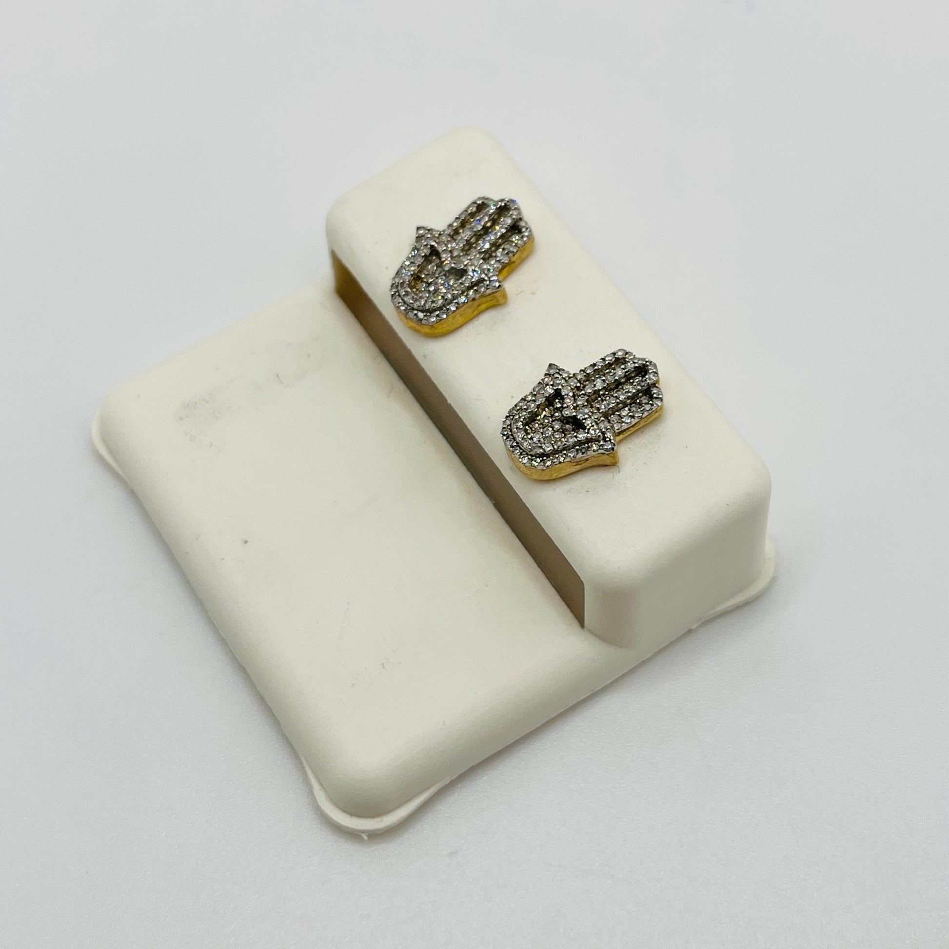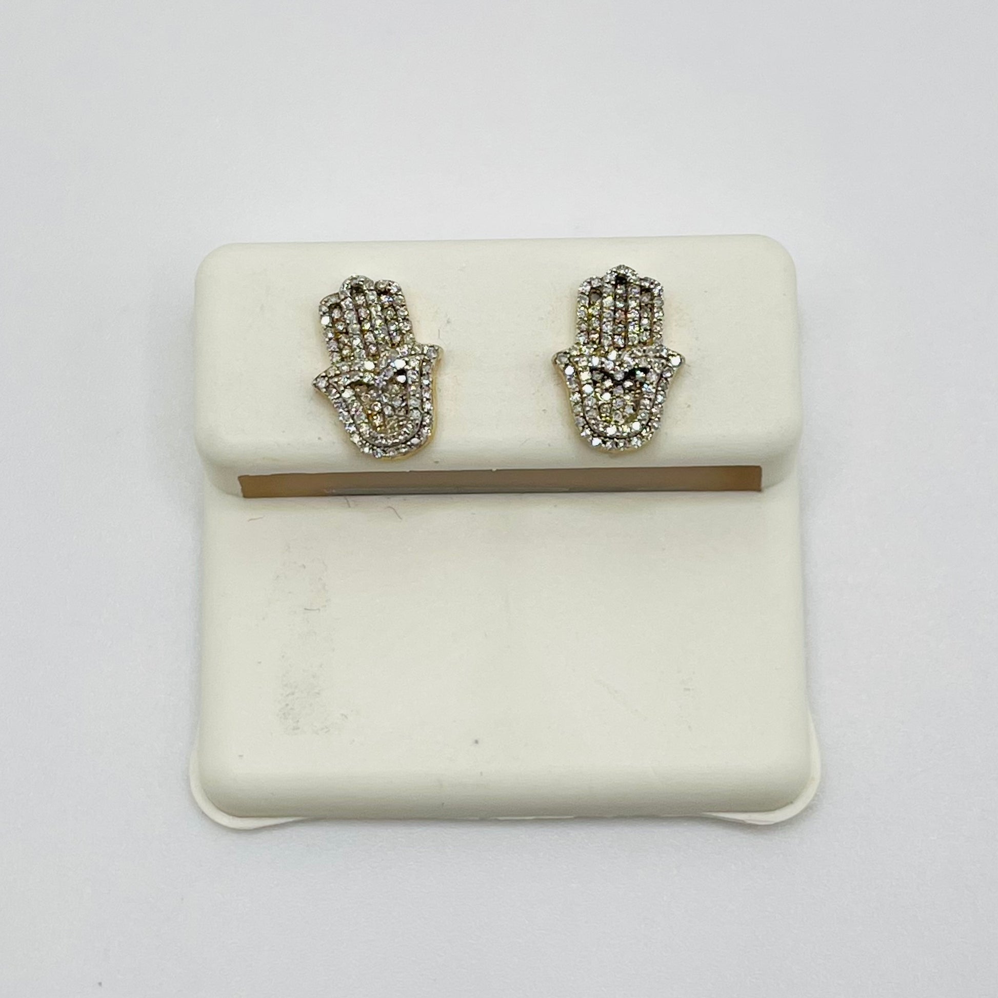 Sparkle and shine with these stunning 10k Gold Natural Diamond Hamza Earrings Studs. Featuring screwback closures, these earrings are not only beautiful but also secure. Elevate your style with this timeless piece.