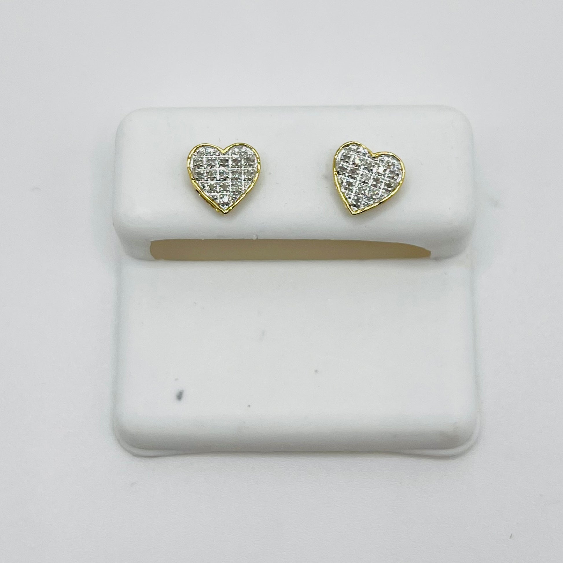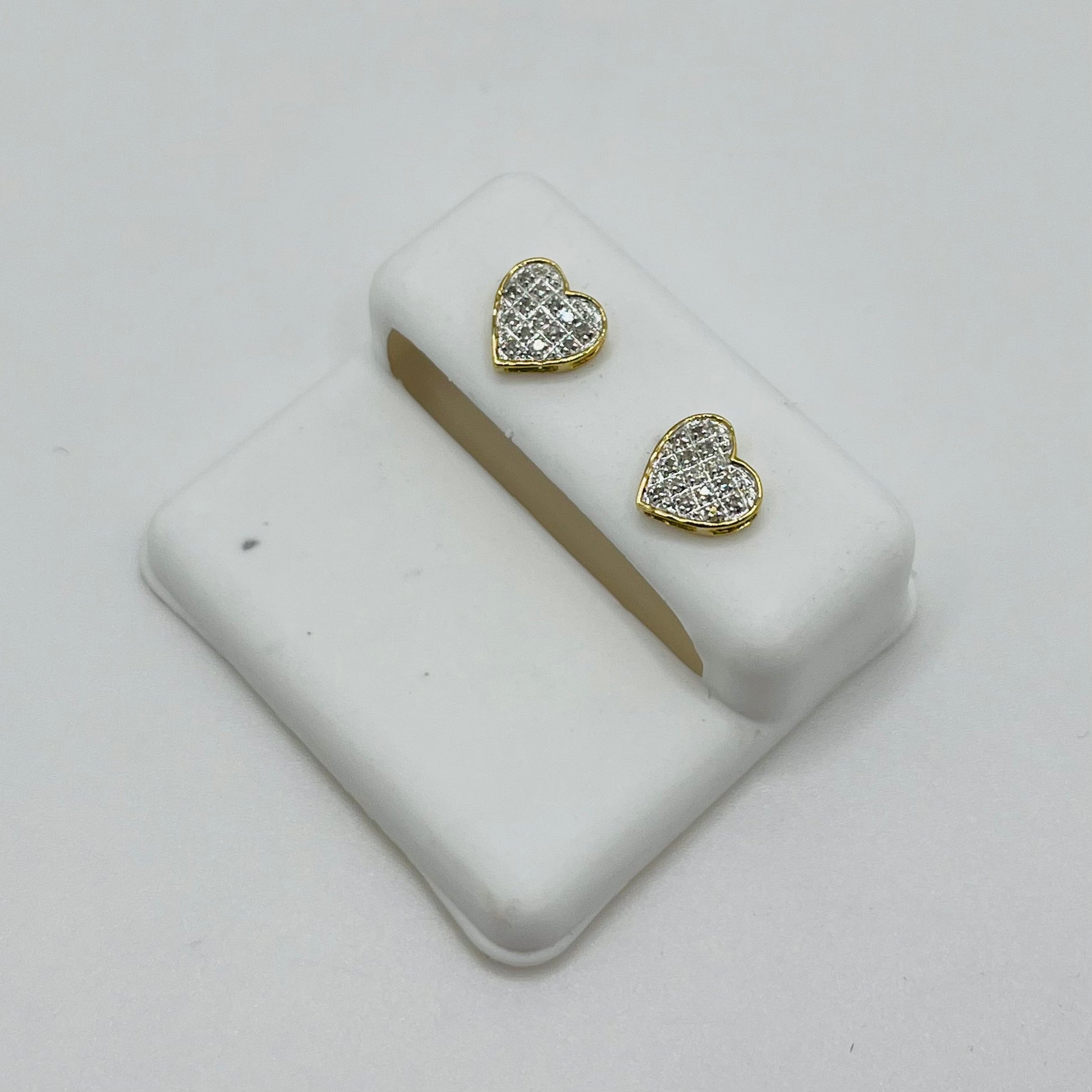 10k Gold Diamond Heart Domed Earrings (Screwback) 7.5mm