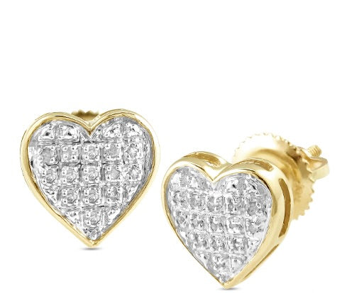Sparkle and shine with these stunning 10k Gold Diamond Heart Domed Earrings. Featuring screwback closures, these earrings are not only beautiful but also secure. Elevate your style with this timeless piece.