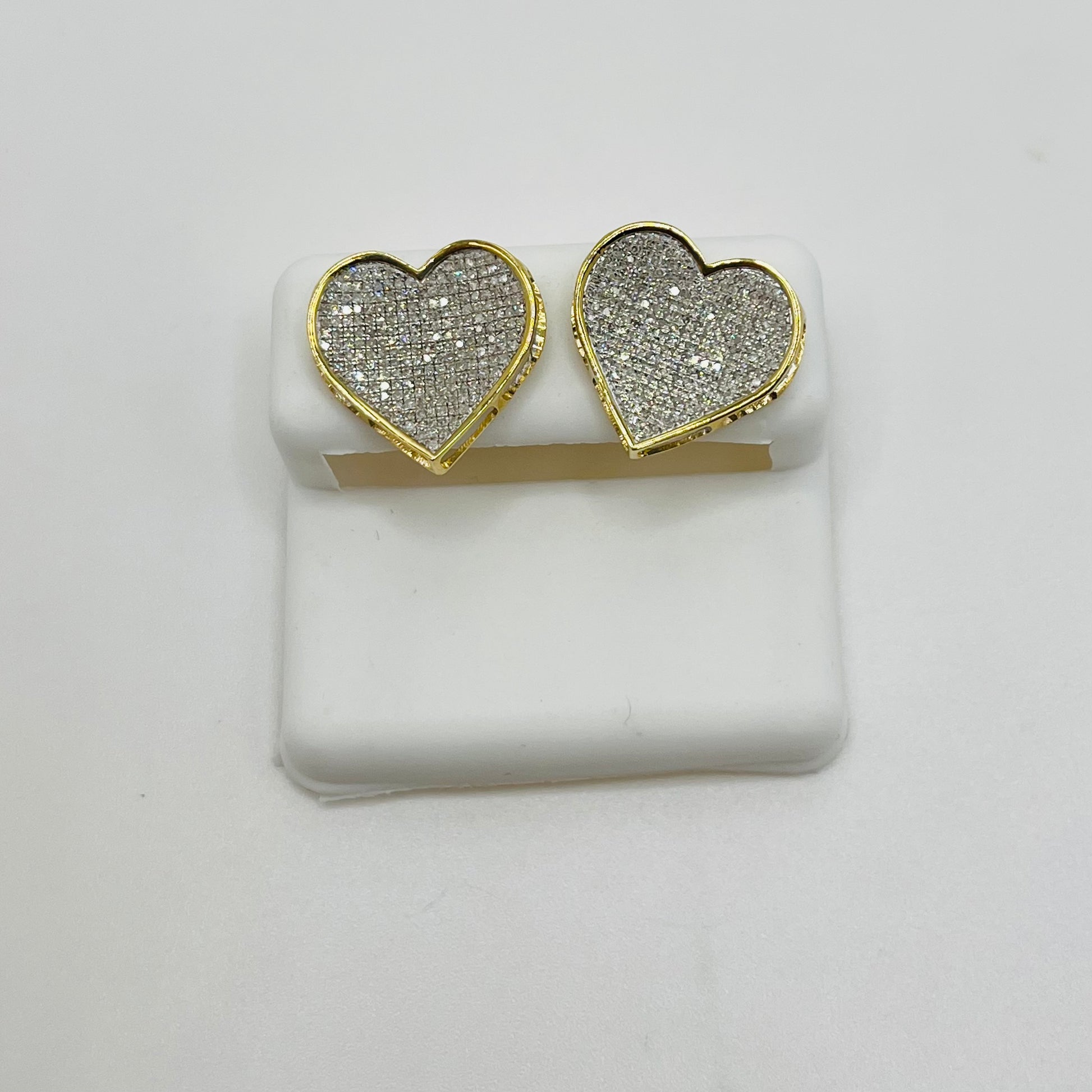 10k Gold Diamond Inverted Heart Earrings (Screwback) 16mm