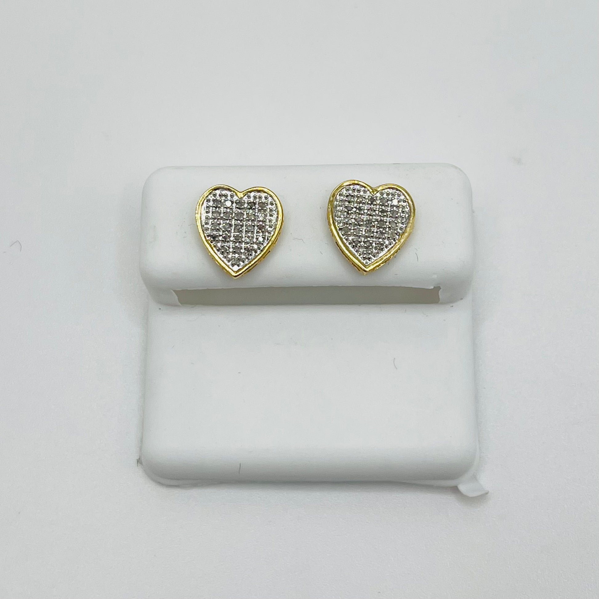 10k Gold Diamond Pointed Heart Earrings (Screwback) 11mm