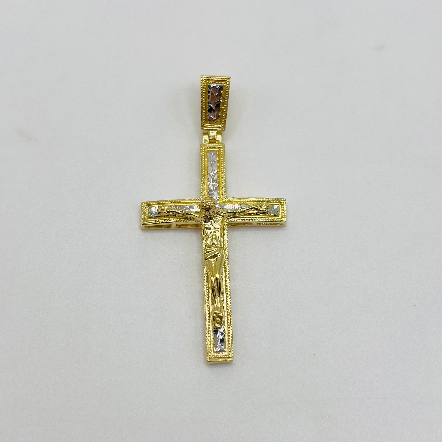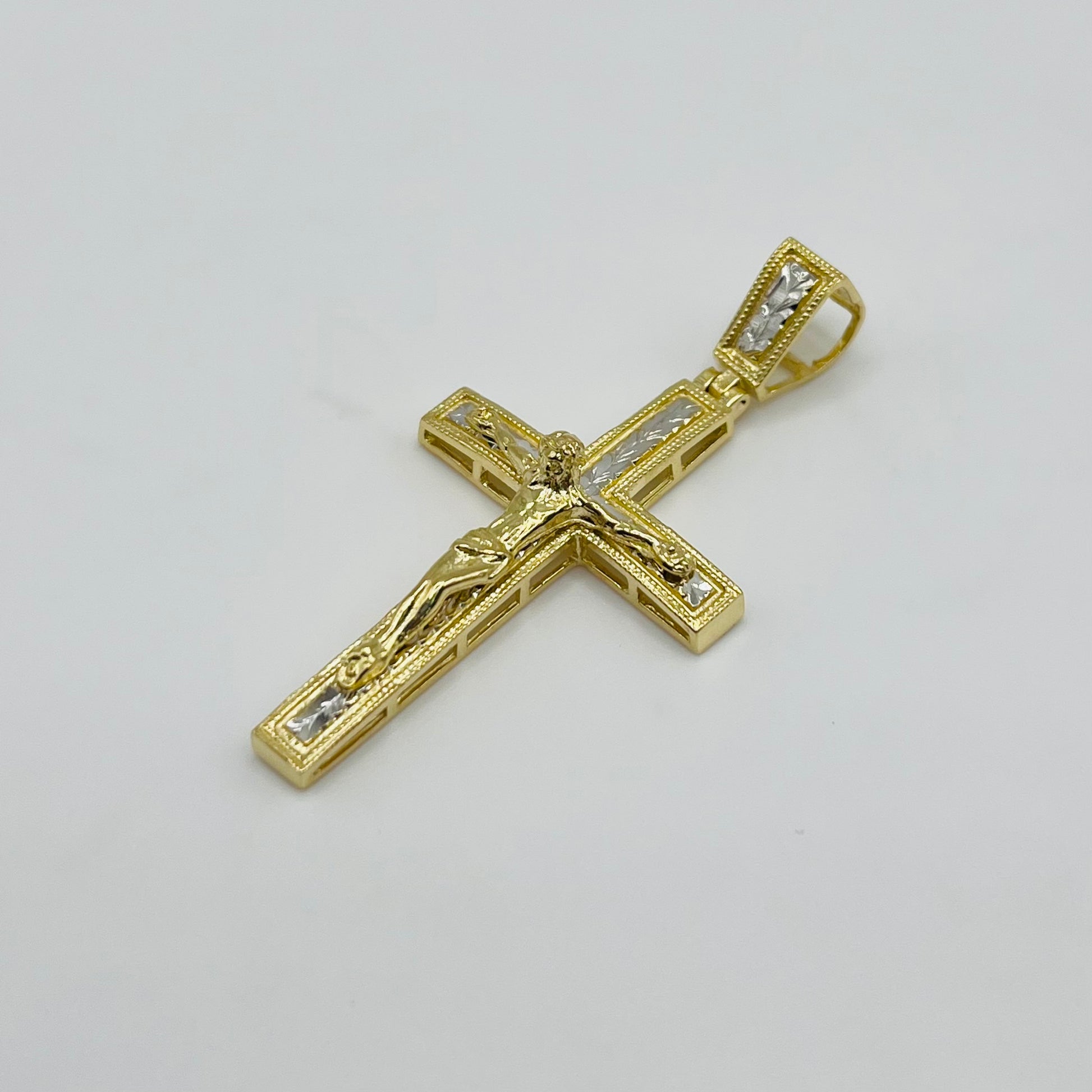 Elevate your faith with timeless elegance. The Divine Duality Cross Pendant is a striking symbol of unity, crafted in genuine 10K gold with a stunning two-tone finish. Featuring a polished yellow gold base accented by white gold detailing, this pendant beautifully represents the harmony of strength and grace, heaven and earth, tradition and modernity.