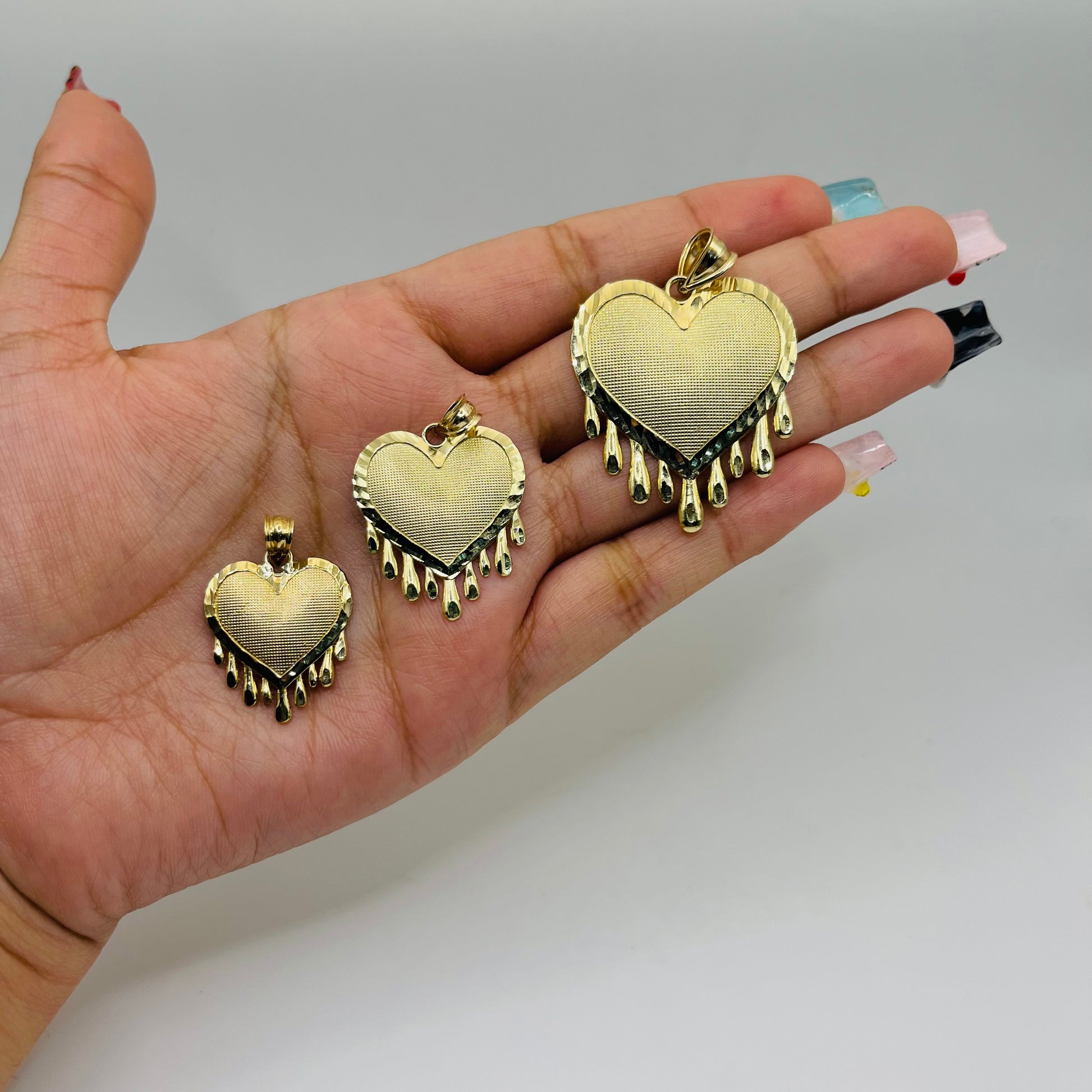 10K Gold Dripping Heart Charm Large
