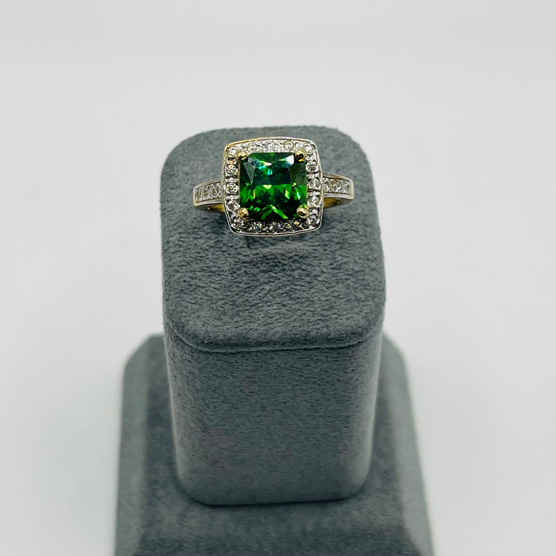Elevate your style with the captivating beauty of this 10K Gold Emerald CZ Ring. Expertly crafted from genuine 10 karat gold, this stunning piece features a vibrant emerald-green cubic zirconia gemstone at its center—symbolizing renewal, wisdom, and timeless elegance. Sparkling CZ accent stones gracefully surround the centerpiece, adding brilliance and dimension to every angle.