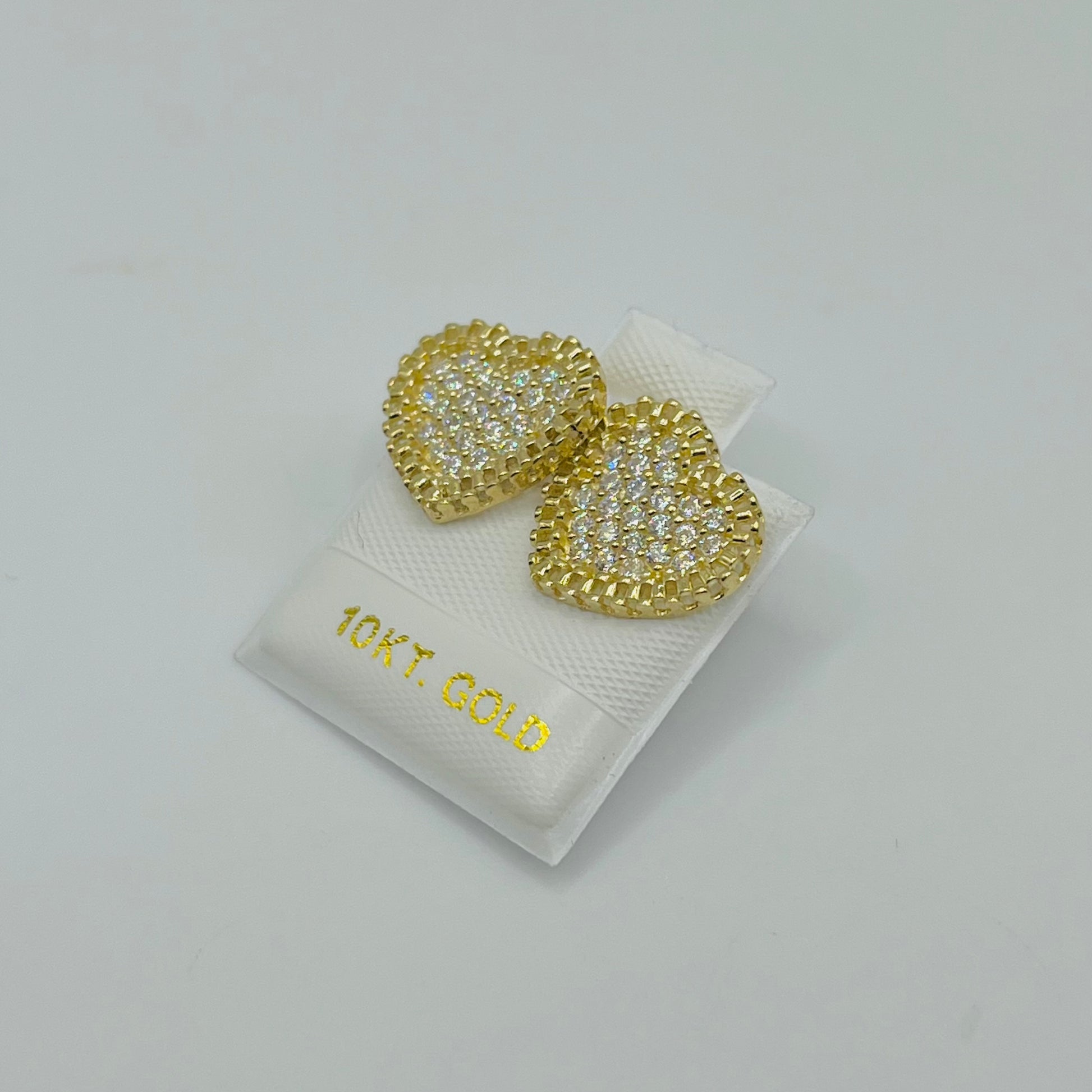 10K Gold Flat RX Heart Earrings with CZ White (Screwback)