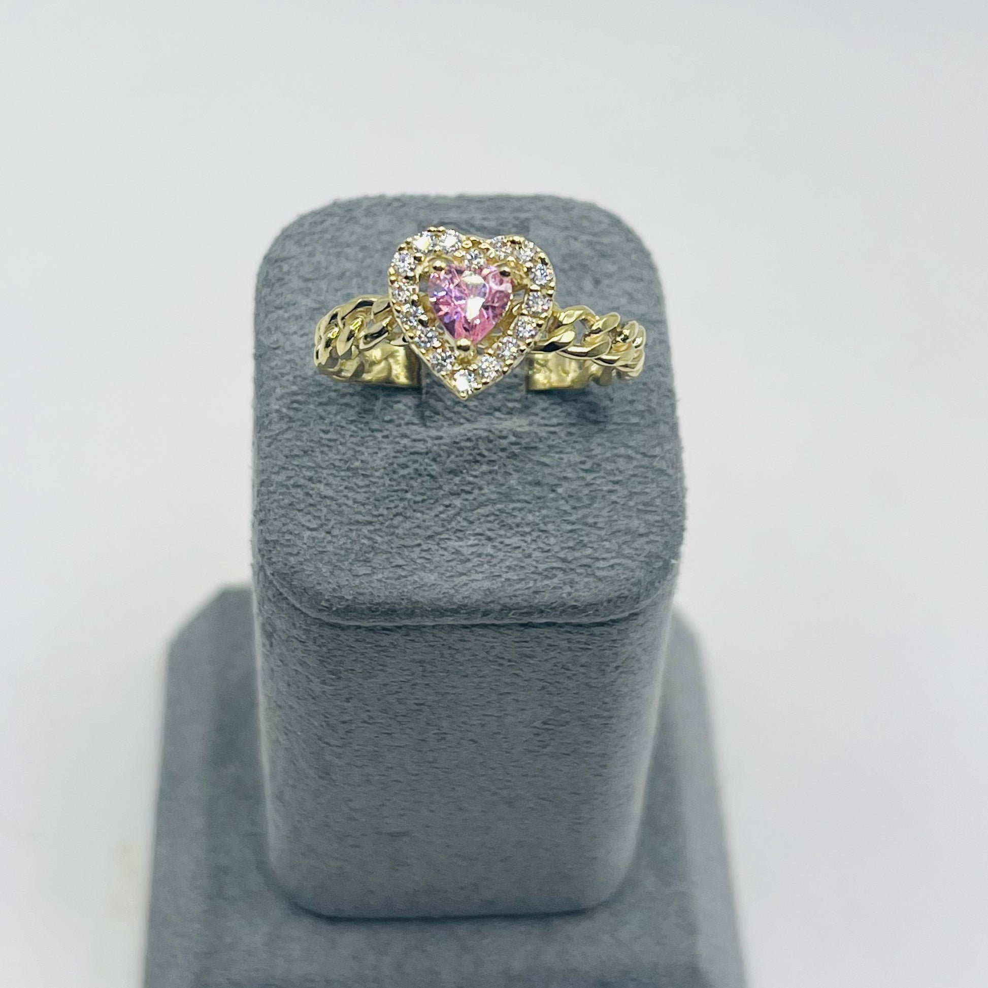 Embrace timeless elegance with the 10k Gold Forever Yours Cuban Ring, featuring a sleek Cuban band adorned by a sparkling pink CZ heart centerpiece. This unique design symbolizes everlasting love and adds a touch of vibrant sophistication to any outfit. Perfect for expressing affection or celebrating special moments, its durable 10k gold ensures lasting shine and comfort. Make a bold statement of love that lasts forever.
