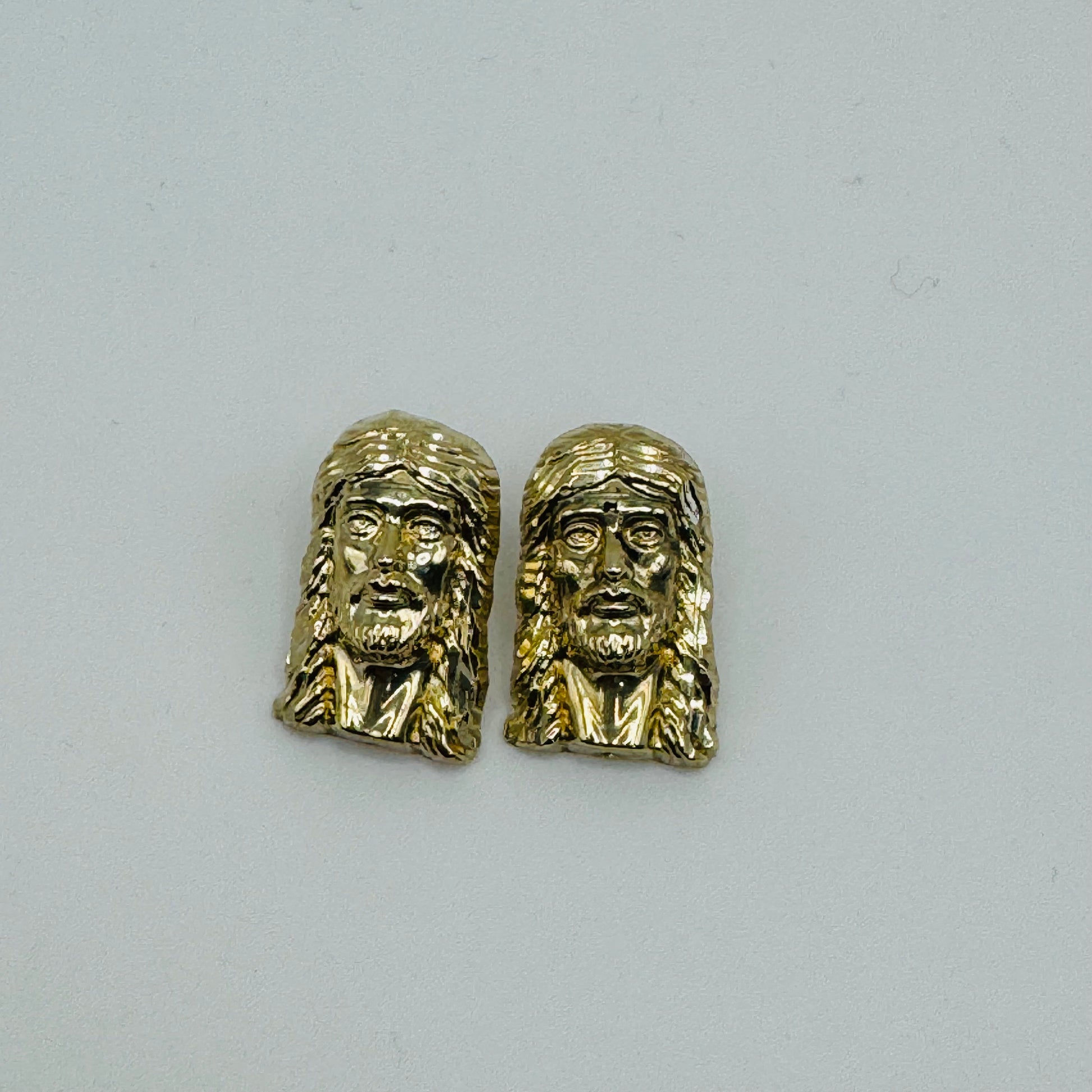 Make a bold statement with these 10K Gold Jesus Piece Earrings. The intricate design and luxurious gold finish add a touch of divine elegance, perfect for elevating your urban style with spiritual flair.