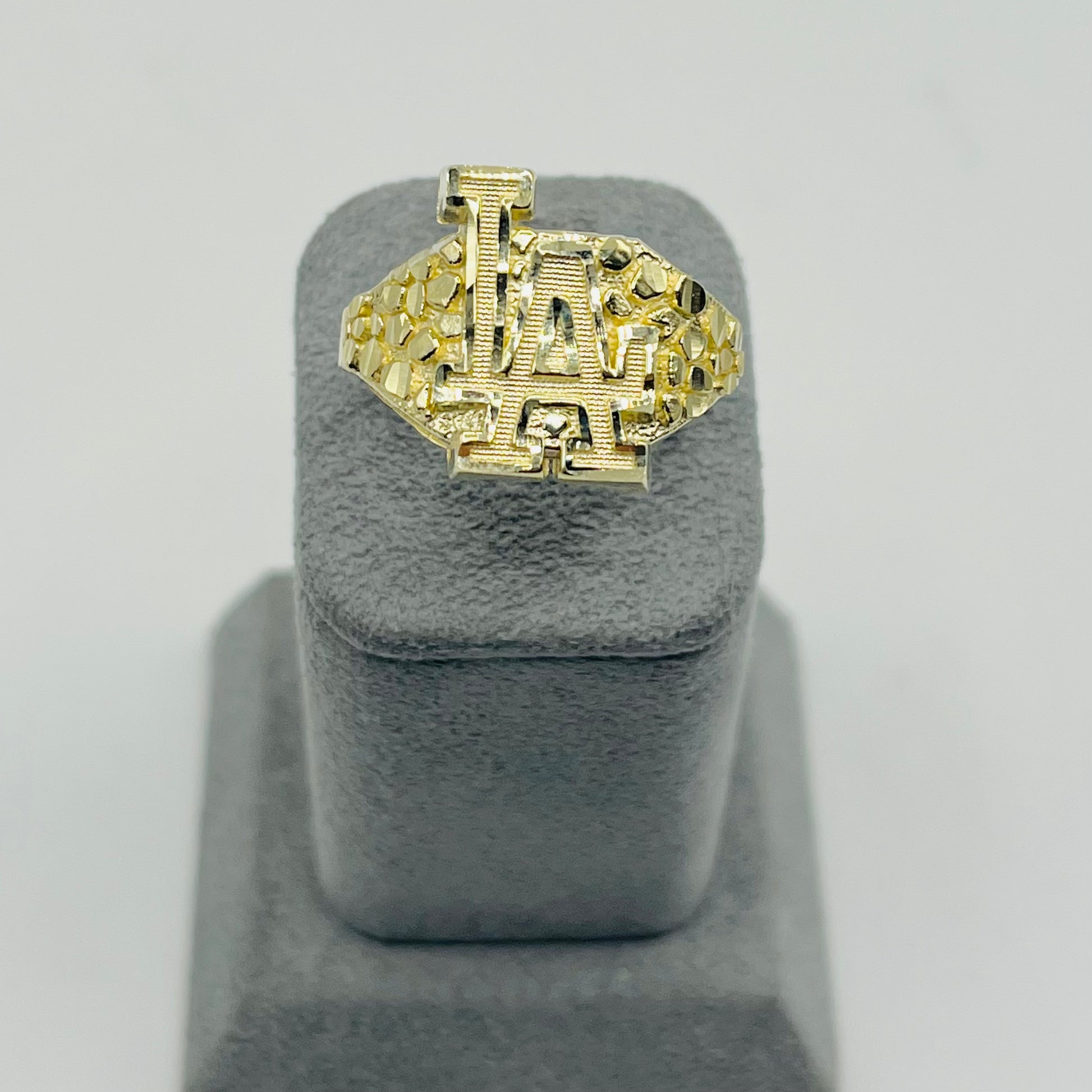 Indulge in pure luxury with our 10k Gold LA Nugget Ring. This exquisite piece features a unique LA nugget design, crafted from the finest materials to add a touch of exclusivity to your wardrobe. Elevate your style and make a statement with this glamorous ring, perfect for any occasion.