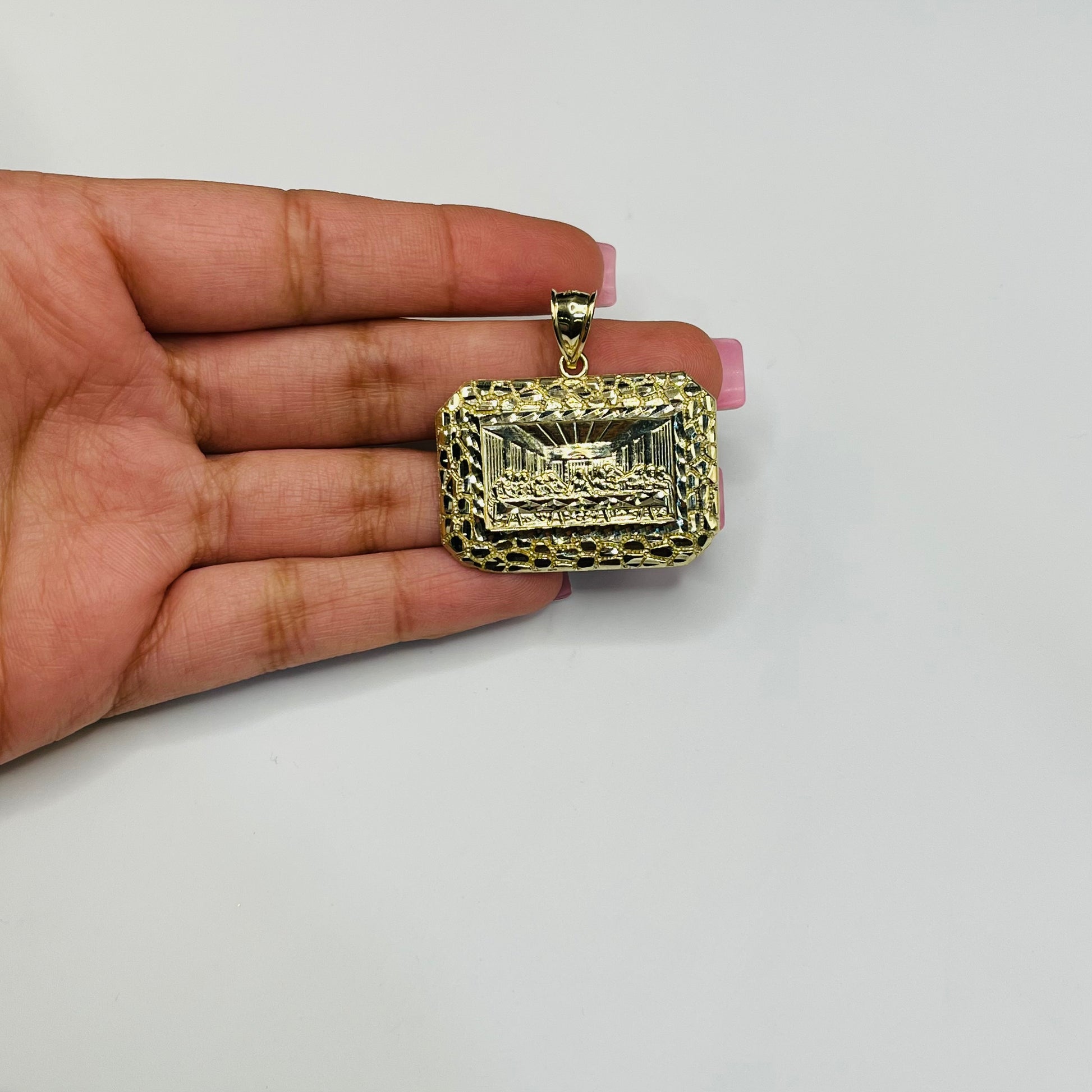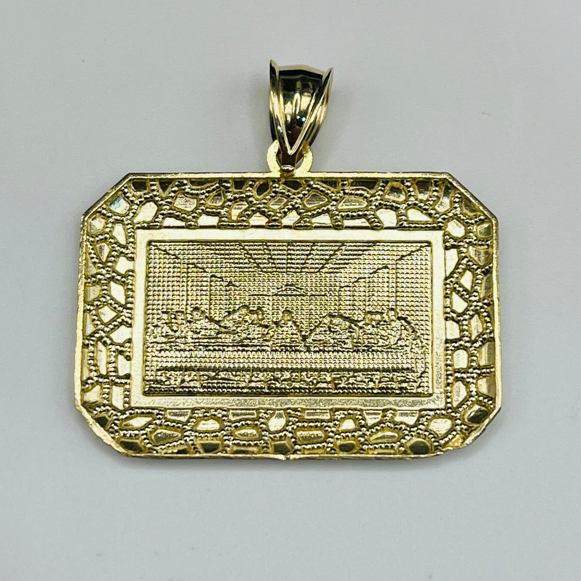 This 10K Gold Last Supper pendant brings timeless style with a modern edge. The pendant features intricate detailing, making it a perfect addition to any collection for those looking to elevate their look with a meaningful statement piece.