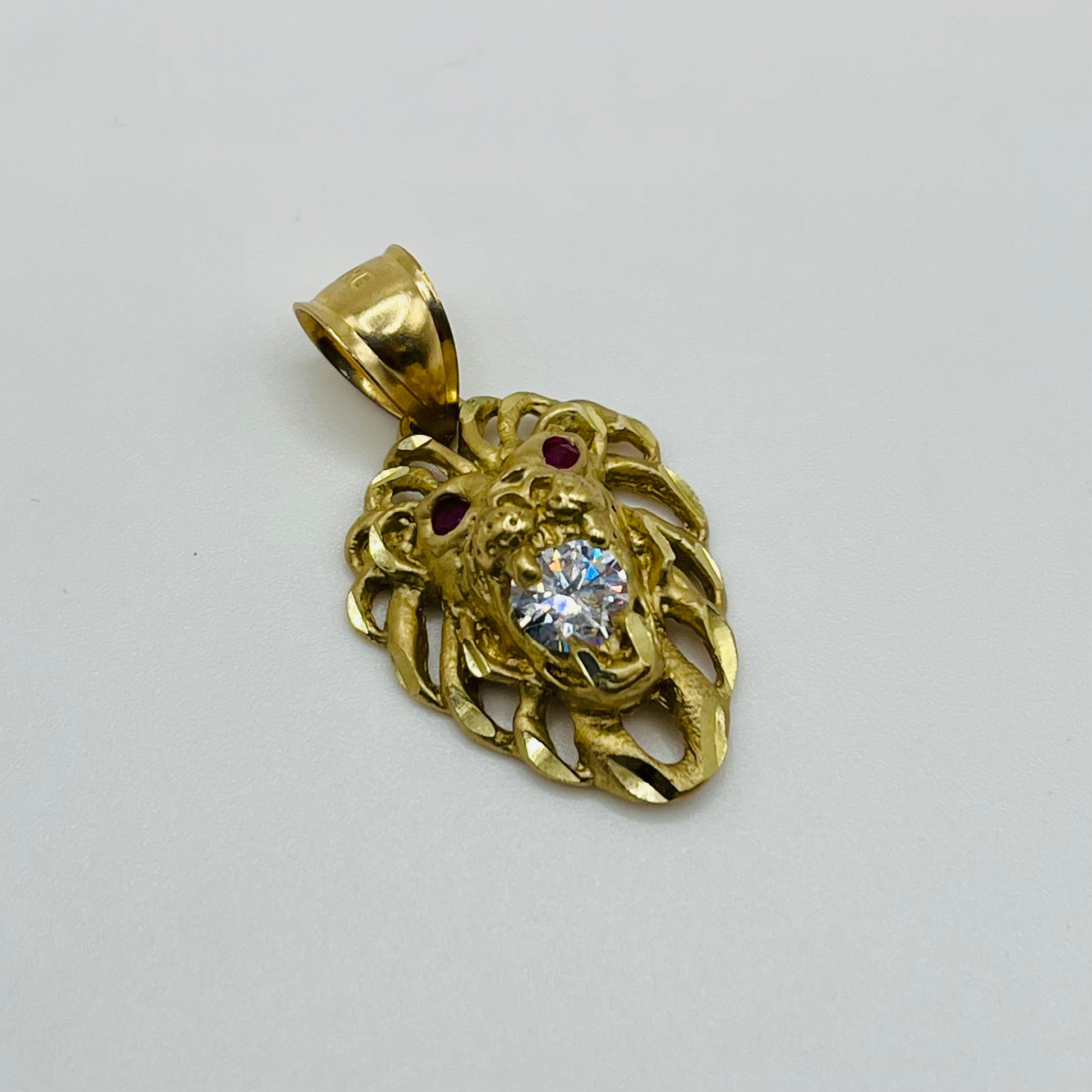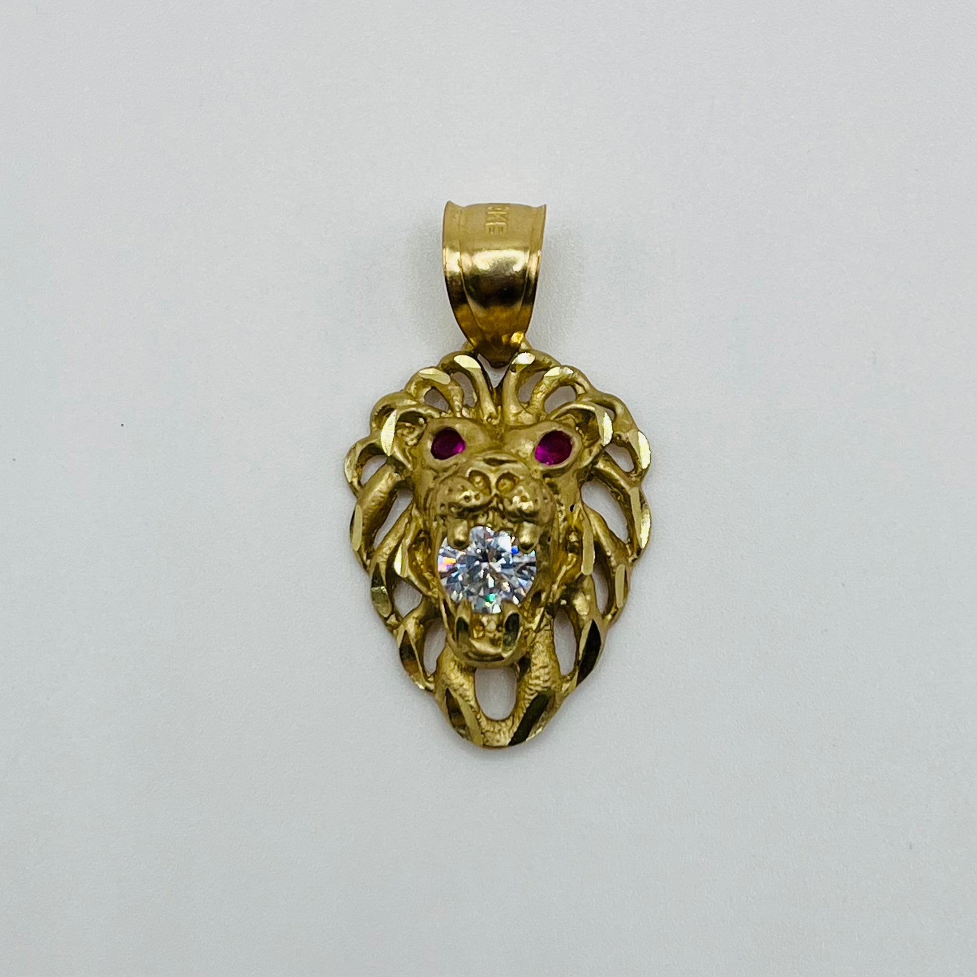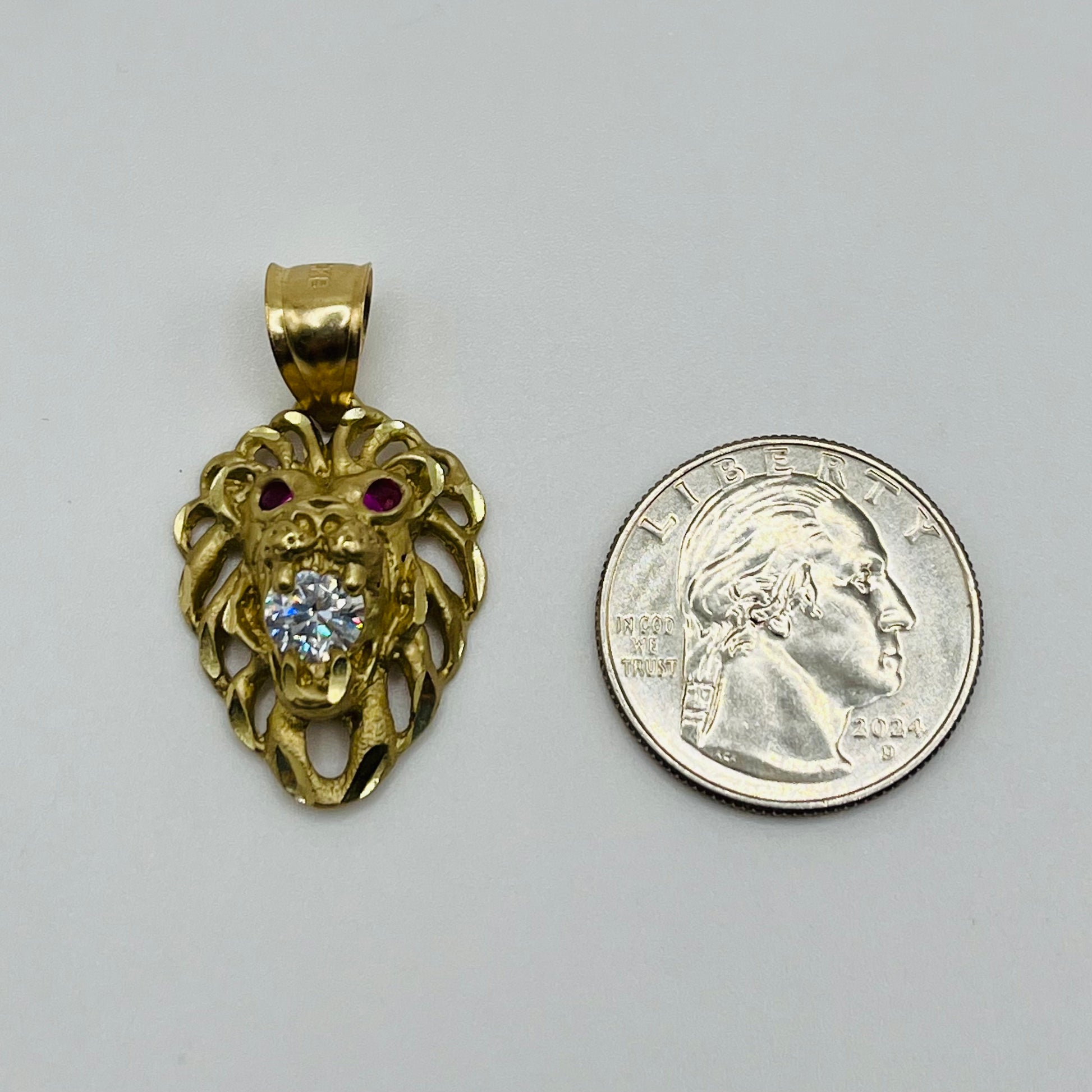 This 10k Gold Lion CZ Charm captures the fierce spirit of the king of the jungle with sparkling red CZ eyes and a dazzling clear CZ stone held in its mouth. Crafted in warm 10k gold, this striking charm adds bold elegance and a touch of wild sophistication to any jewelry collection. Perfect for those who want to showcase strength and style in one unique piece.