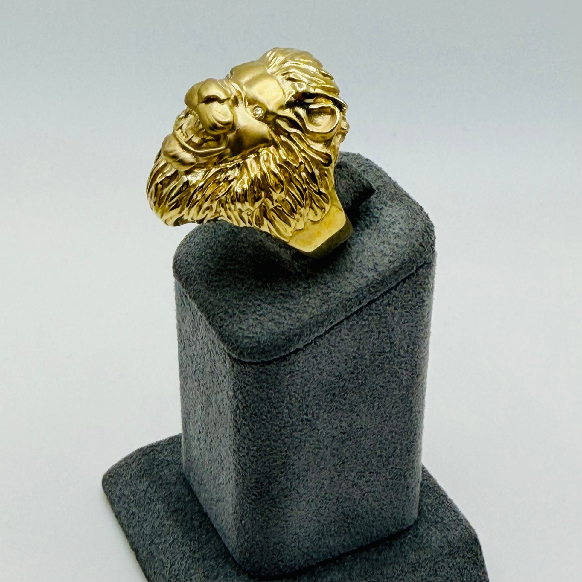 Roar into elegance with this striking 10k gold lion ring, where fierce majesty meets refined craftsmanship. The matte finish creates a sophisticated, understated look while brilliant cubic zirconia eyes capture light with captivating sparkle. Perfect for those who embrace bold statement jewelry with timeless appeal. This piece commands attention without compromise—a conversation starter that celebrates your confident, untamed spirit.