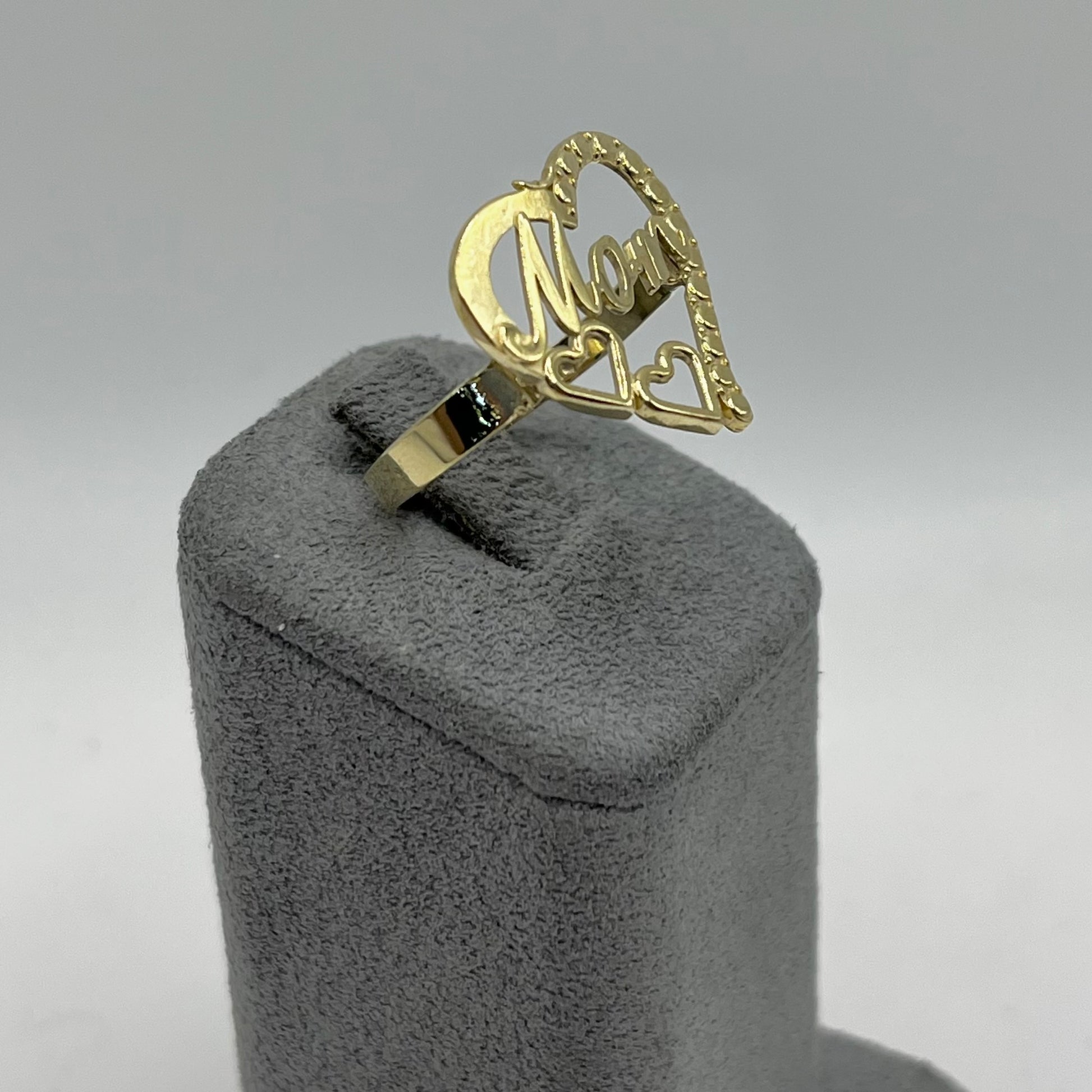 A beautiful tribute to the woman who means everything. Our 10k Gold Loving Mom Ring is crafted from solid 10k yellow gold and features an elegant “Mom” design that symbolizes love, gratitude, and unbreakable bond. With its smooth polished finish and timeless look, this ring makes the perfect gift for Mother’s Day, birthdays, or simply to say “thank you.” A piece she’ll cherish forever.