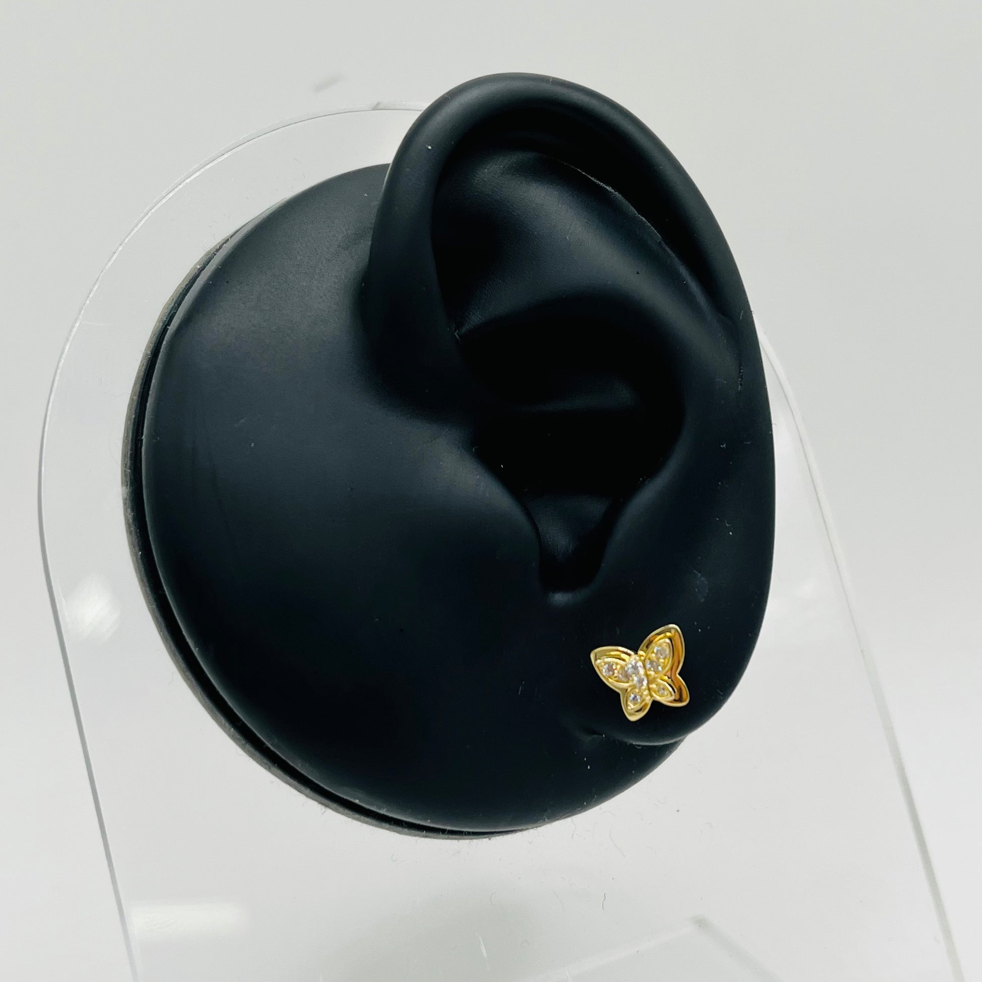 10k Gold 3D Mini Butterfly Cz Earrings (Screwback)
