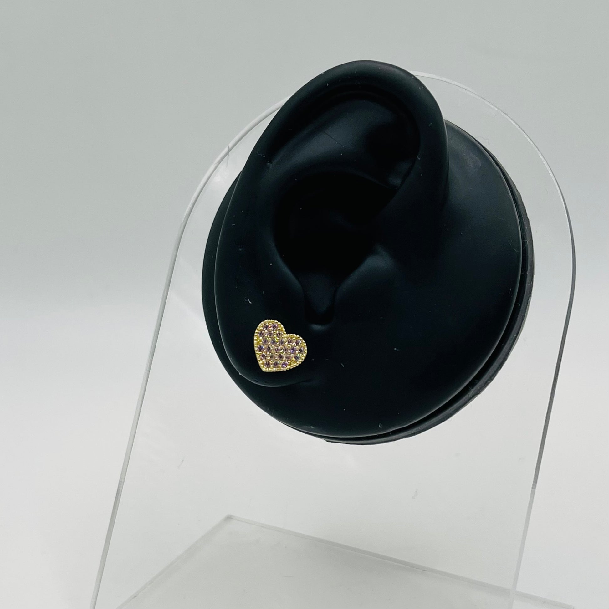 10k Gold Mini Pink Bead Heart CZ Earrings