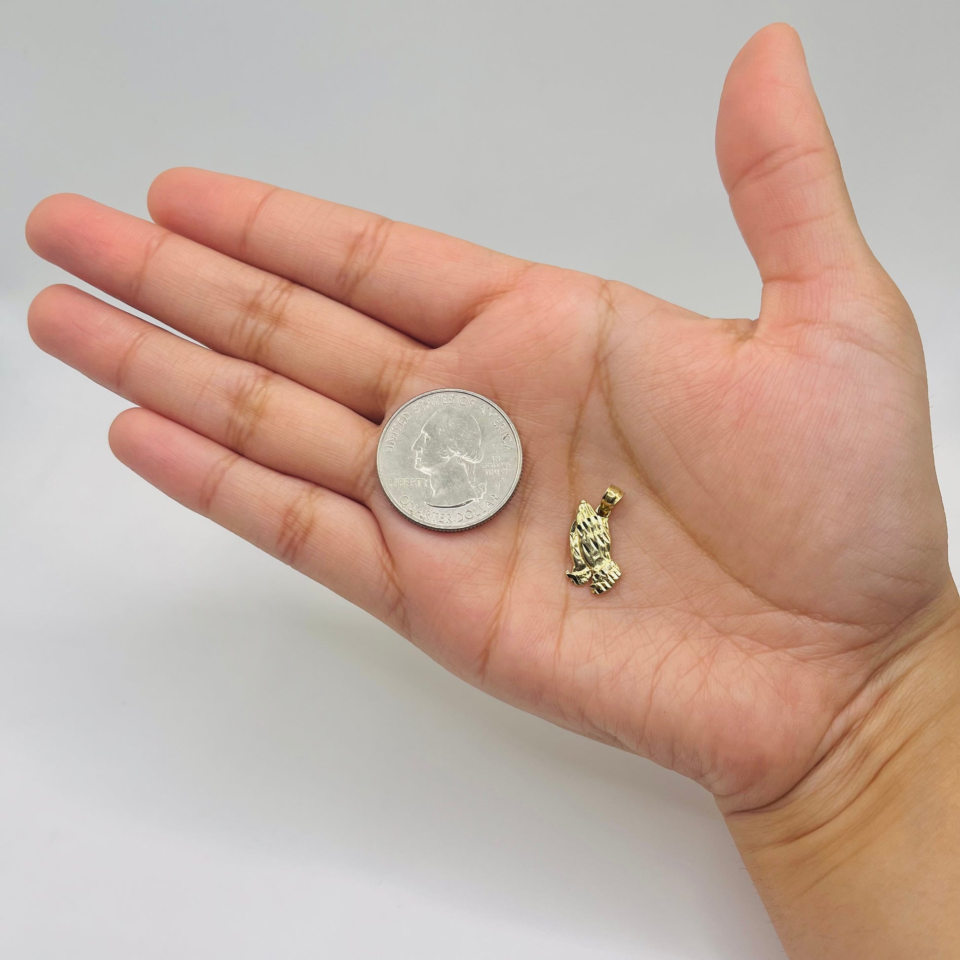 This 10k Gold Mini Praying Hands charm might be small but is a meaningful symbol of faith and devotion, crafted to add a touch of elegance to any jewelry collection. Its delicate design captures the spirit of prayer, making it a perfect gift or personal keepsake. Wear it close to your heart on a dainty chain as a daily reminder of hope and strength.