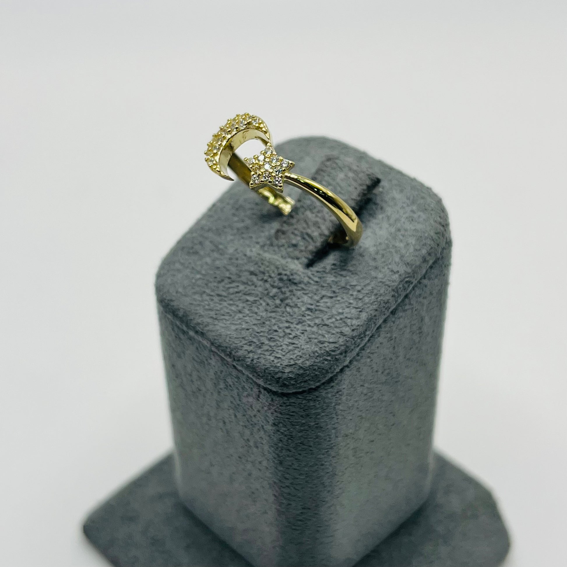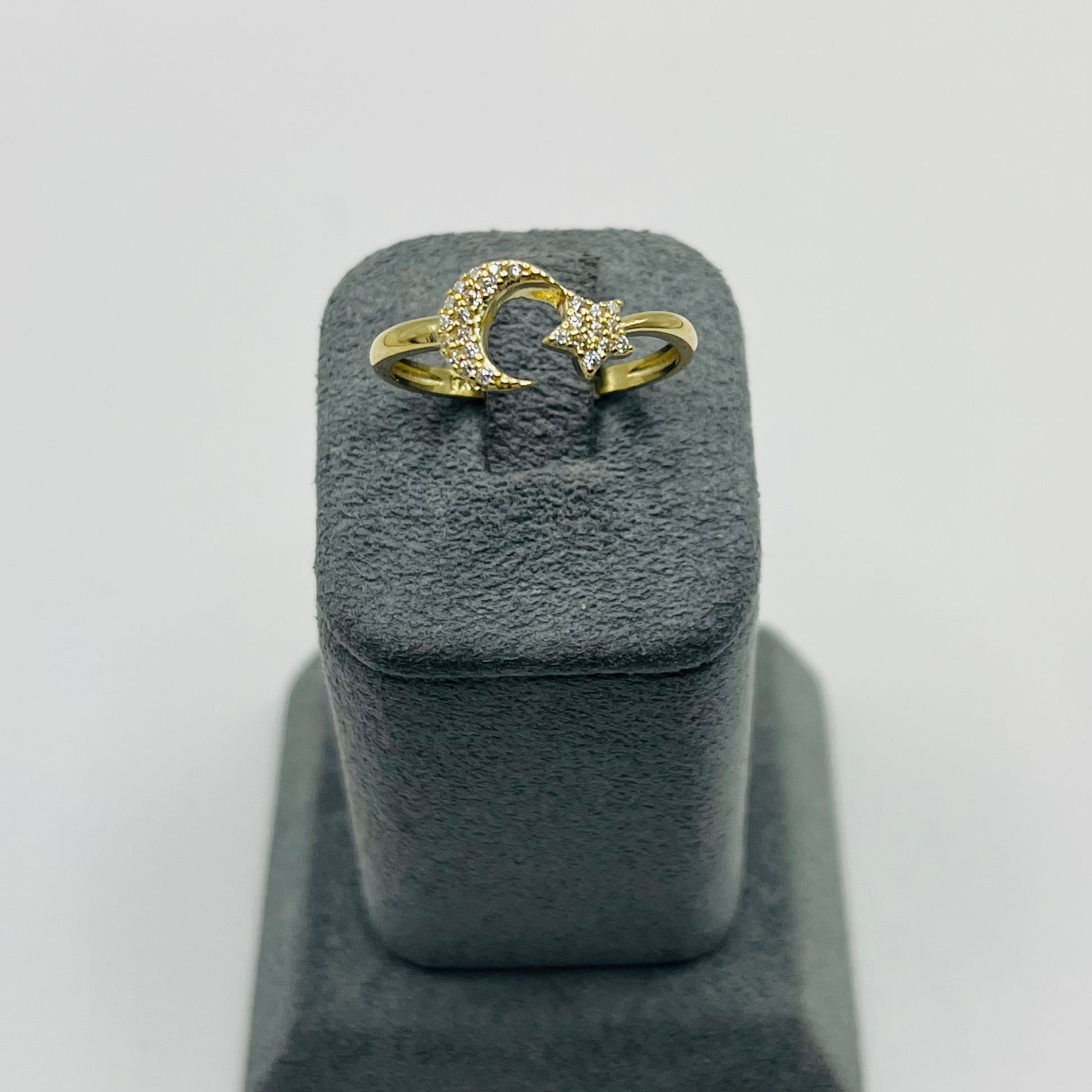 Elevate your style with this 10k Gold Moon and Stars CZ Ring, featuring sparkling cubic zirconia stones that catch the light beautifully. This elegant design balances celestial charm with everyday wearability, making it perfect for adding a subtle yet captivating touch to any outfit. Crafted from durable 10k gold, this ring promises lasting shine and comfort. Embrace a piece that reflects your unique sparkle and love for the night sky.