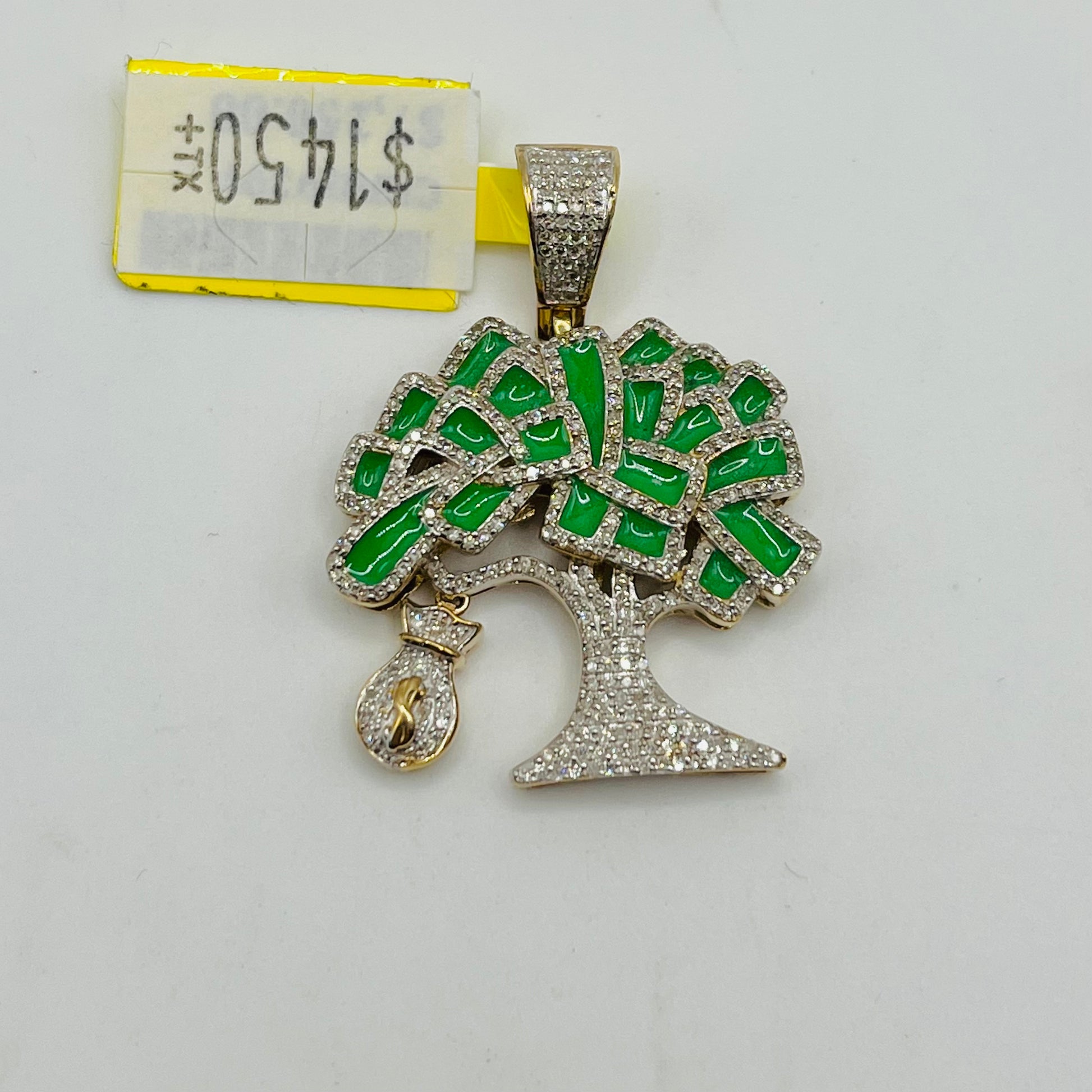 Discover the power of abundance with our 10k Gold Natural Diamond Moneybag Tree Charm! The intricate money tree design symbolizes wealth and prosperity, while the dangling diamond money bag adds a touch of elegance. Perfect for the savvy and stylish individual who knows the value of luxury.
