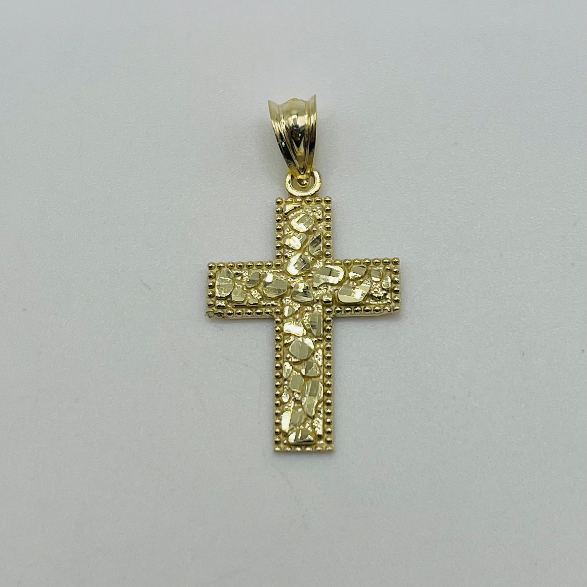 Carry a symbol of strength and heritage with the 10k Gold Nugget Legacy Cross. Crafted from genuine 10 karat gold, this striking pendant features a distinctive nugget texture that highlights the raw beauty of natural gold. The bold, rugged design pays homage to timeless craftsmanship and enduring faith, making it a perfect piece to honor your personal legacy or to gift to someone special.