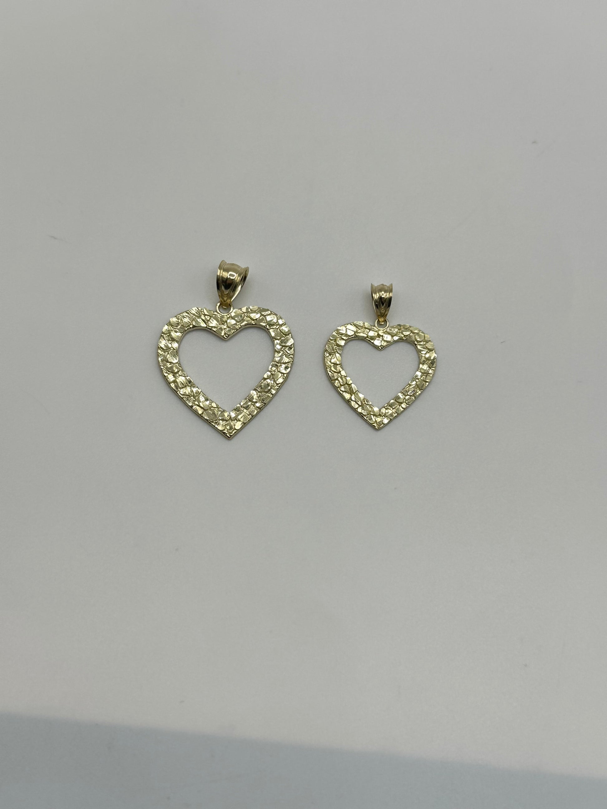 Our small 10k Gold Nugget Open Heart Charm is the perfect combination of urban flair and beauty. Fits most chains up to 3mm. THis charm is 1" tall and dainty.
