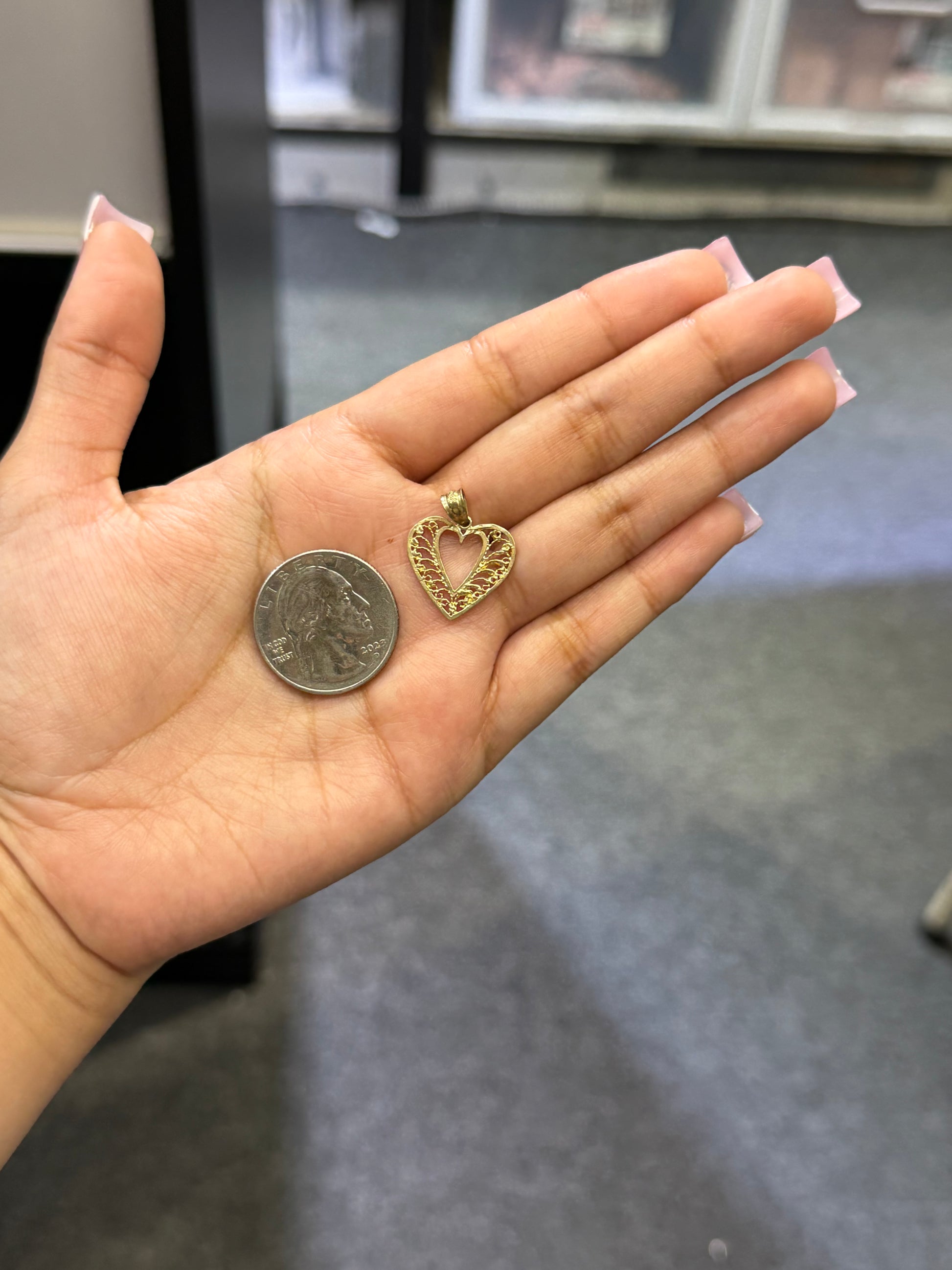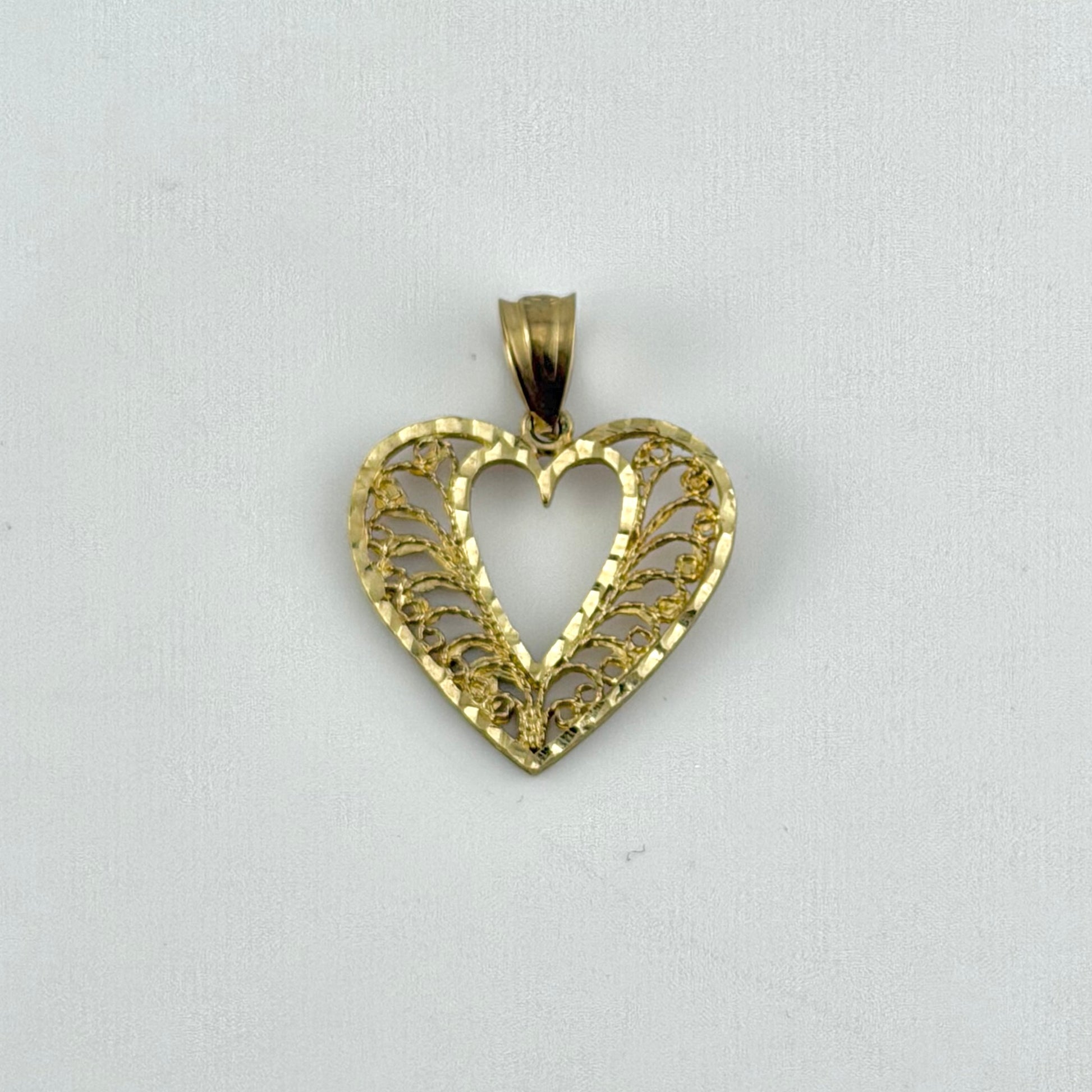 Delicate 10k gold charm featuring an open heart design with a cutout heart in the center. The lightweight construction makes it perfect for layering on bracelets or chains without added bulk. The nested heart motif creates beautiful dimension and catches light beautifully. An elegant, versatile piece that works for everyday wear or special occasions.