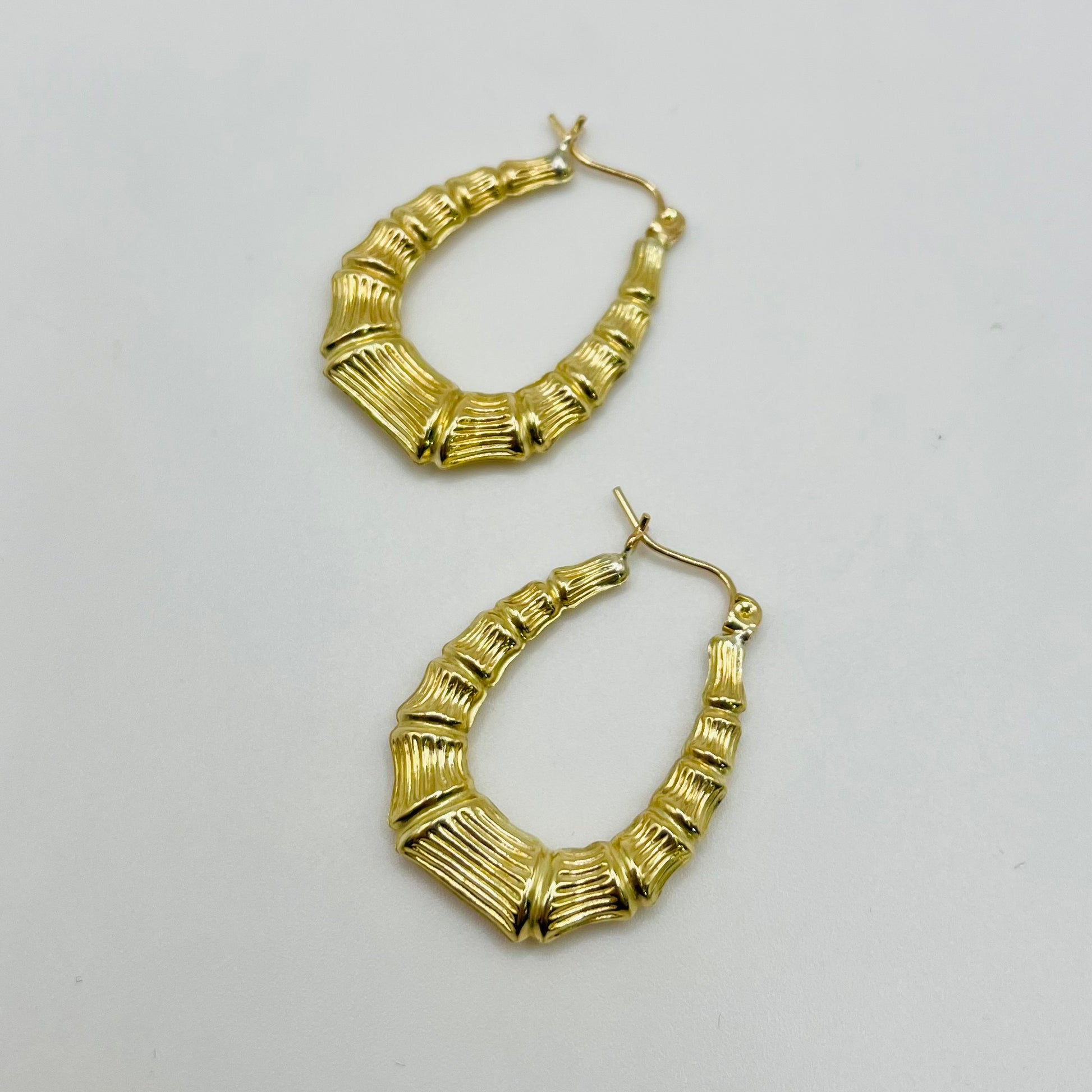 10K Gold Oval Shape Bamboo Hoops (1.1")