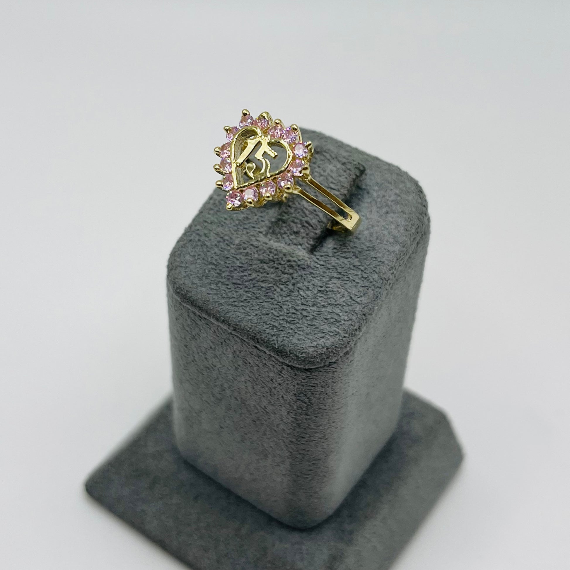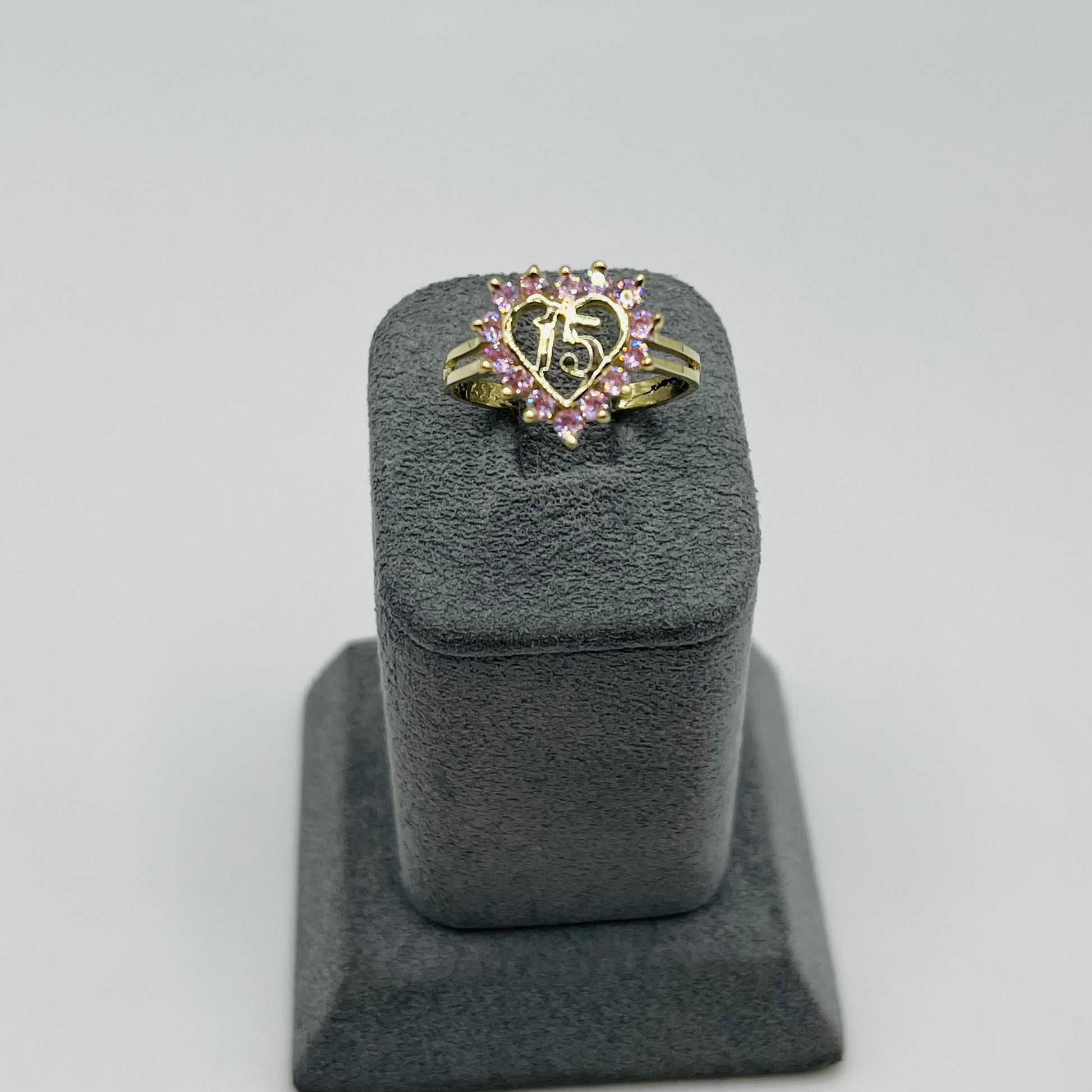 Celebrate a milestone moment with this elegant 10K gold quince ring, featuring a stunning pink cubic zirconia heart at its center. Crafted from durable 10-karat gold, this piece combines timeless sophistication with youthful charm, making it the perfect keepsake for a quinceañera or special occasion.