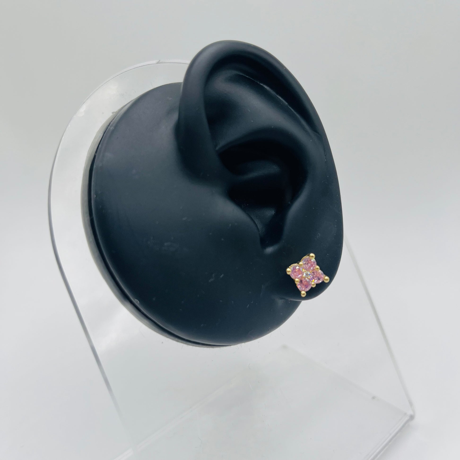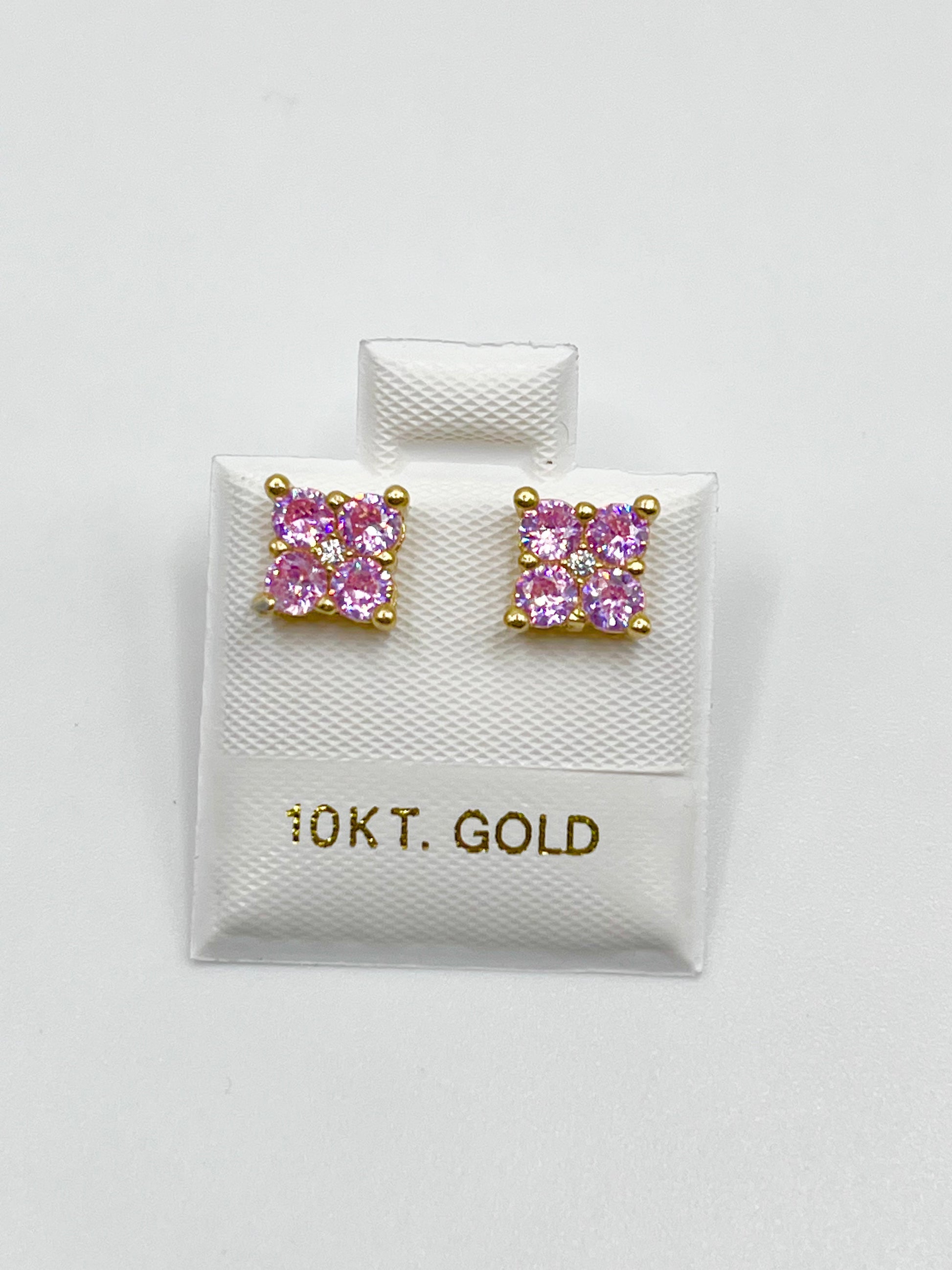 Elevate your street style with these 10K Gold Pink Square CZ studs, blending luxury with a pop of color. Perfect for the urban trendsetter, these earrings bring a subtle yet vibrant edge to any outfit. These earrings have push backings