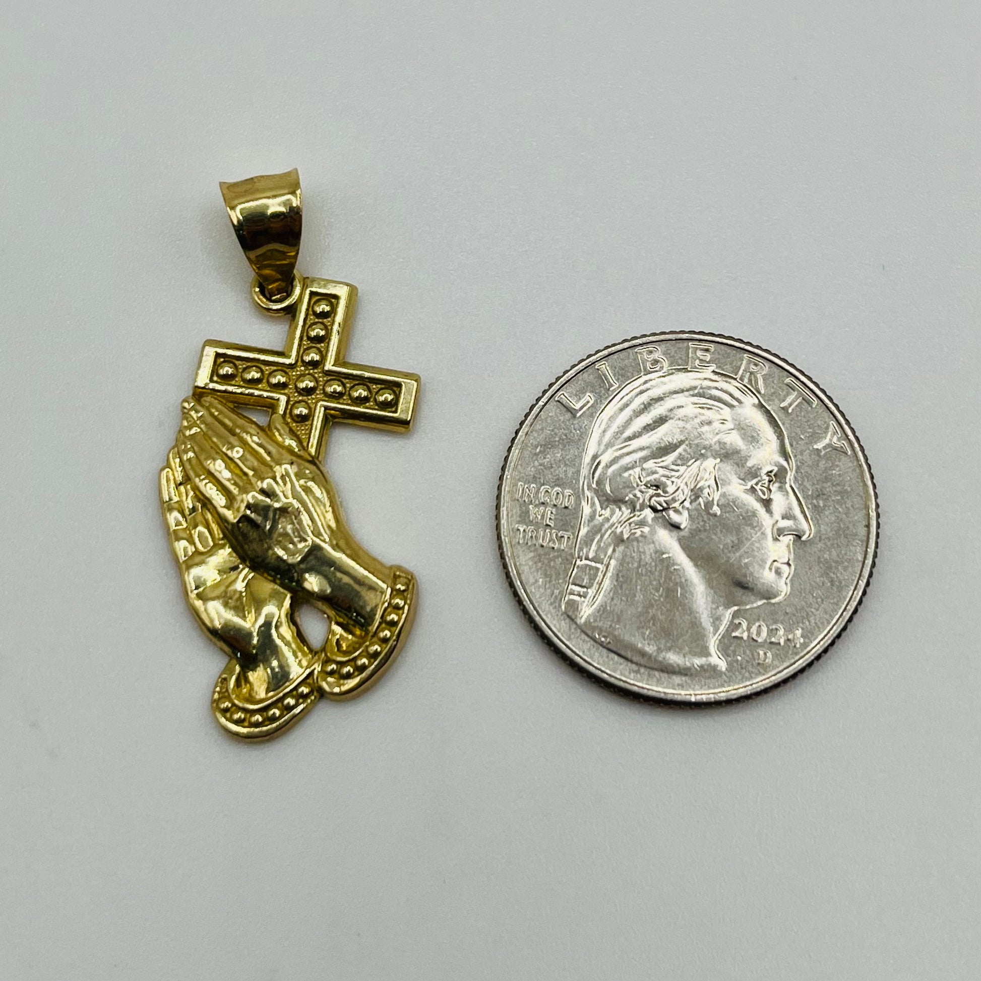 10k Gold Praying Hands with Cross Charm