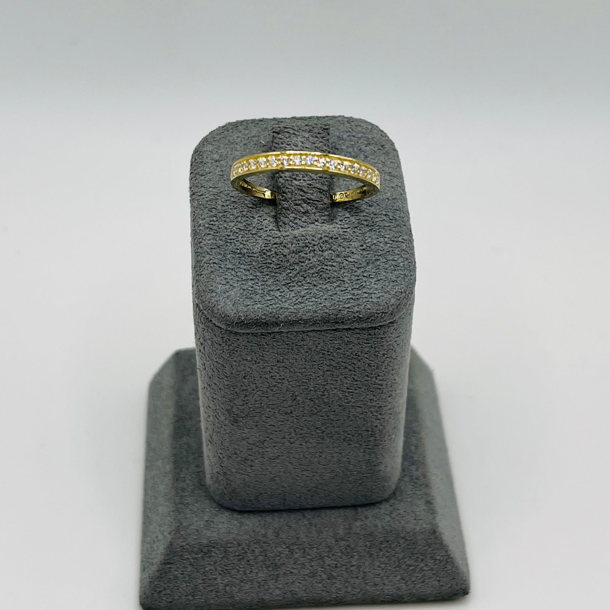 Elevate your jewelry collection with this stunning cubic zirconia band set in authentic 10K gold. The 2mm wide band features a secure prong setting that showcases brilliant sparkle and clarity.